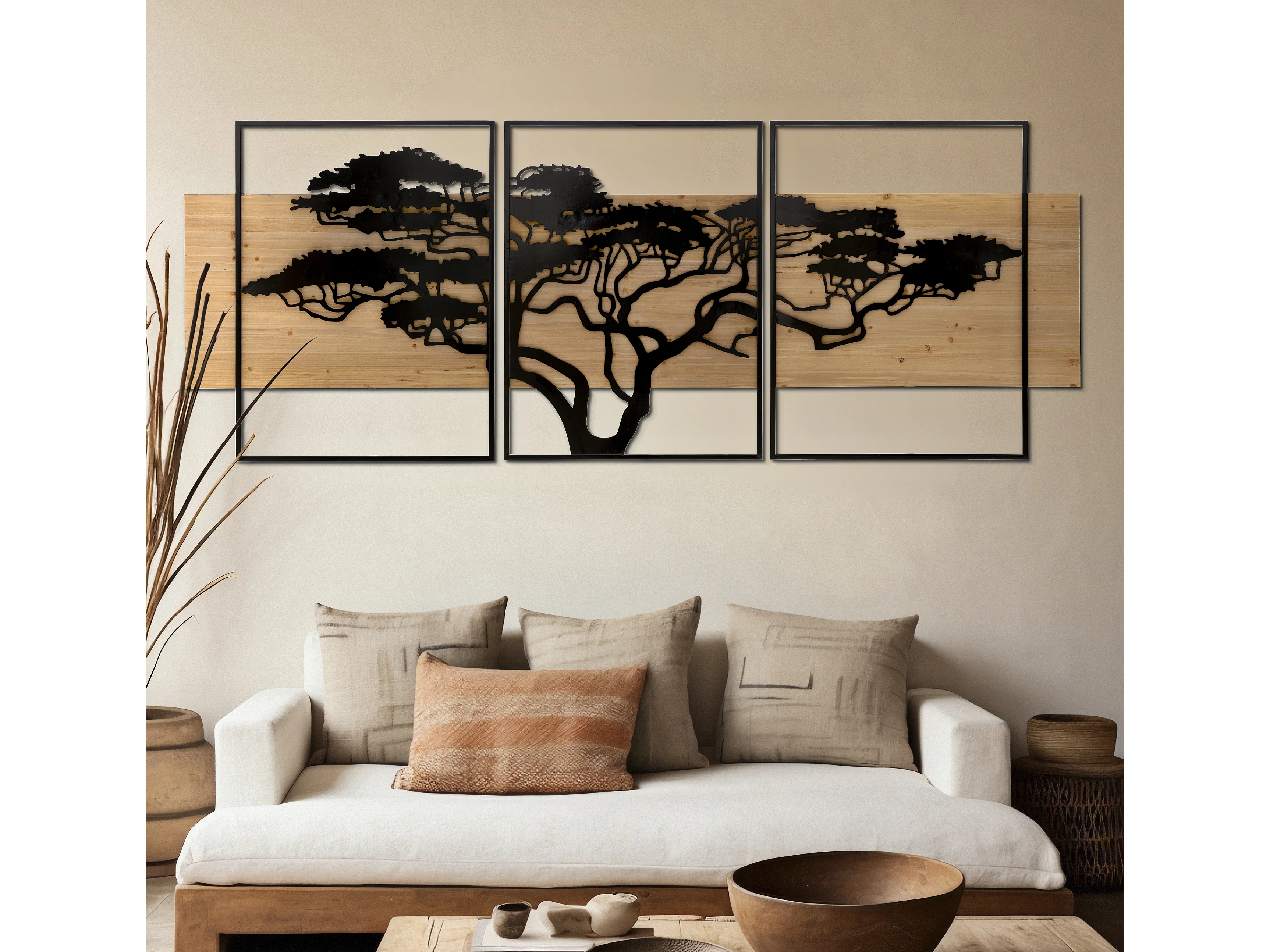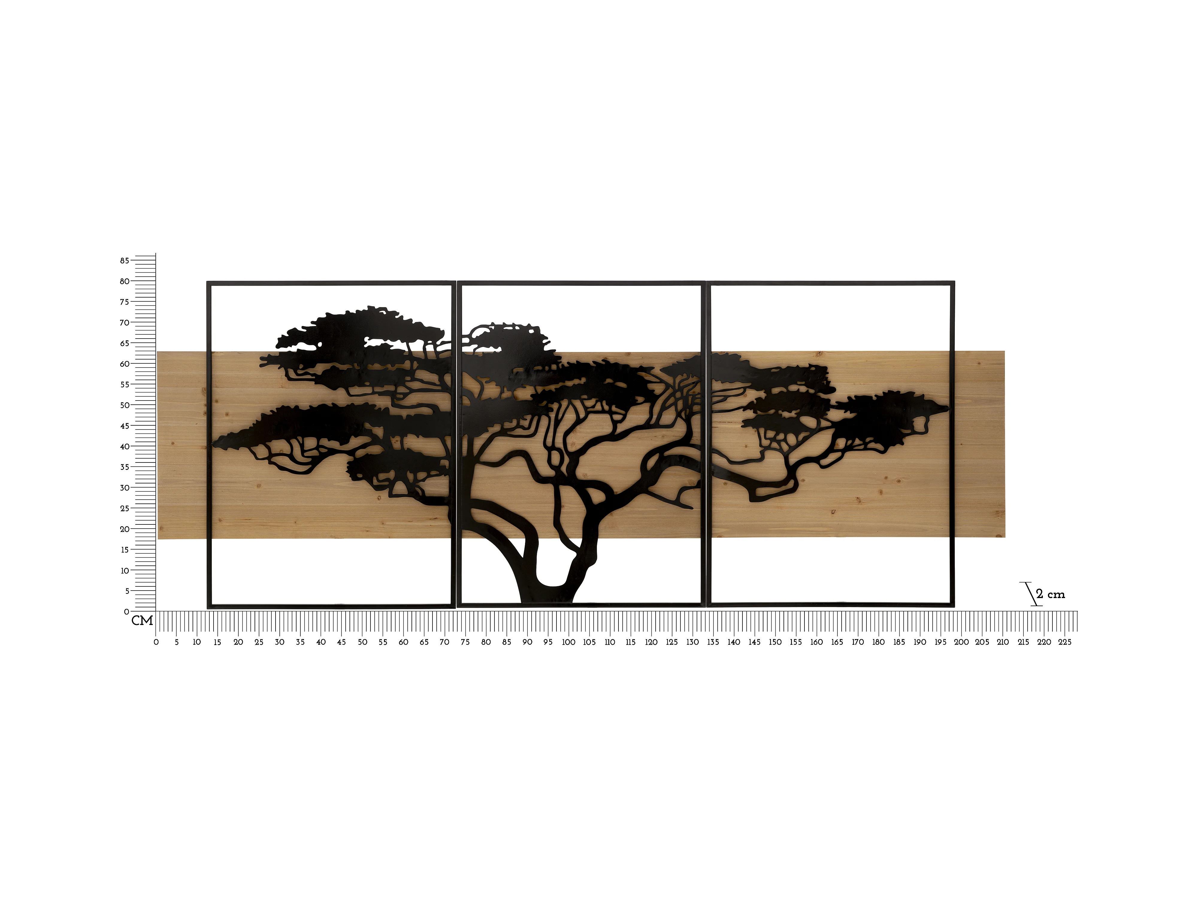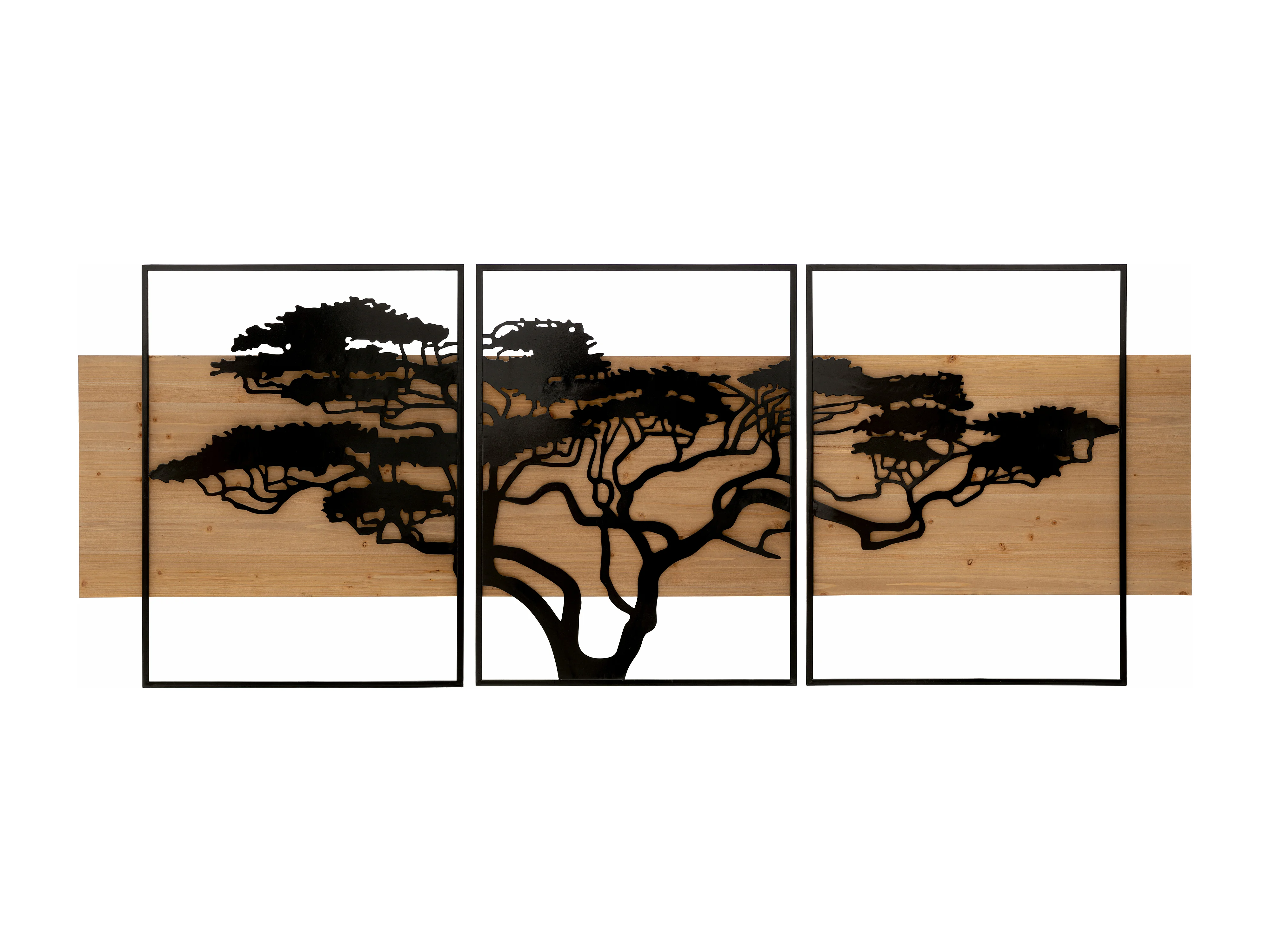 Set di 3 pannelli decorativi 3D in metallo e legno nero cm 204x2x80