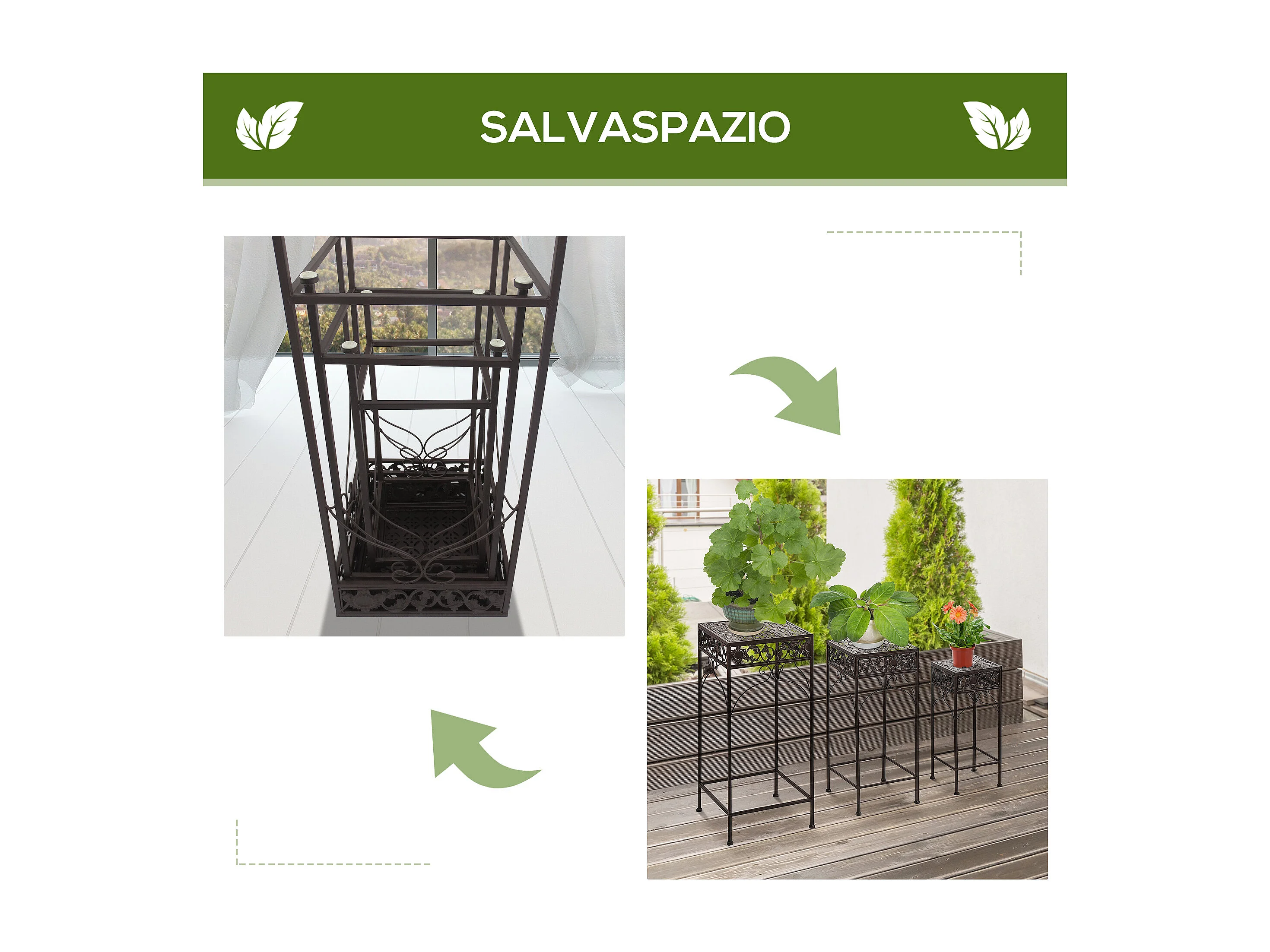 Portapiante verticale pieghevole 5 vasi da esterno in metallo