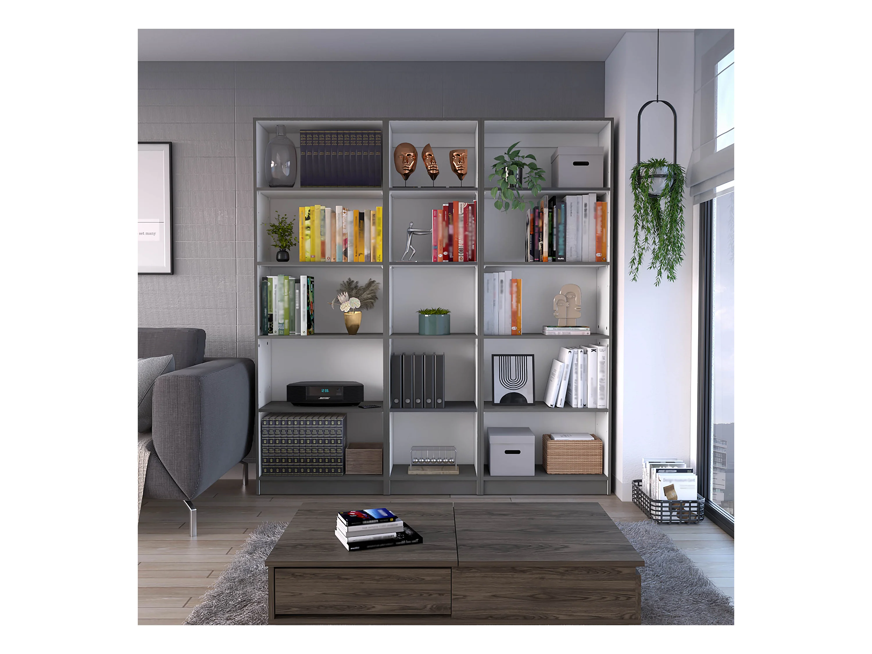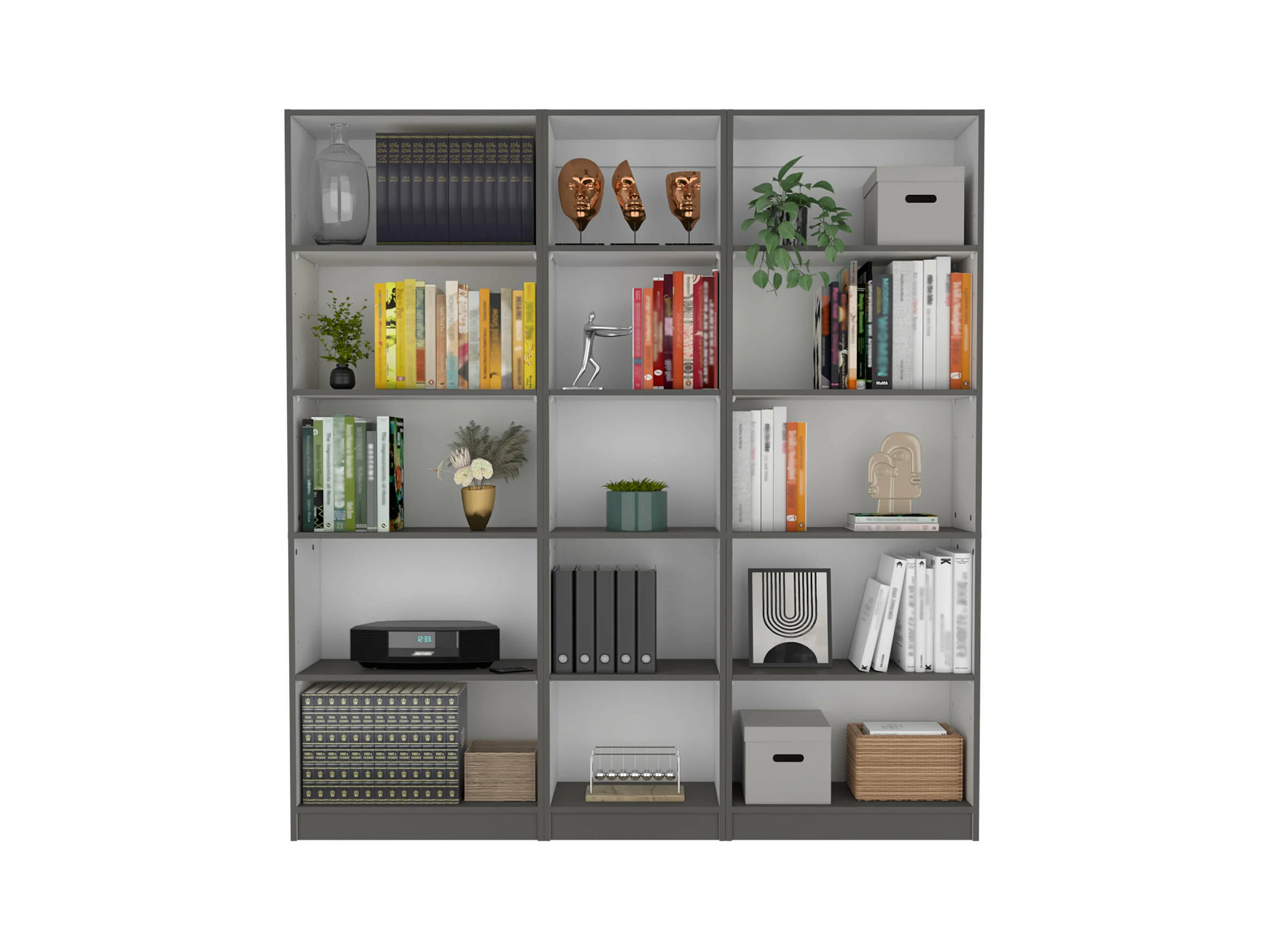 Libreria 3 pezzi per ufficio in melamina con ripiani e 2 ante, 180.6 cm X 188.4 cm X 29.9 cm , Multicolore