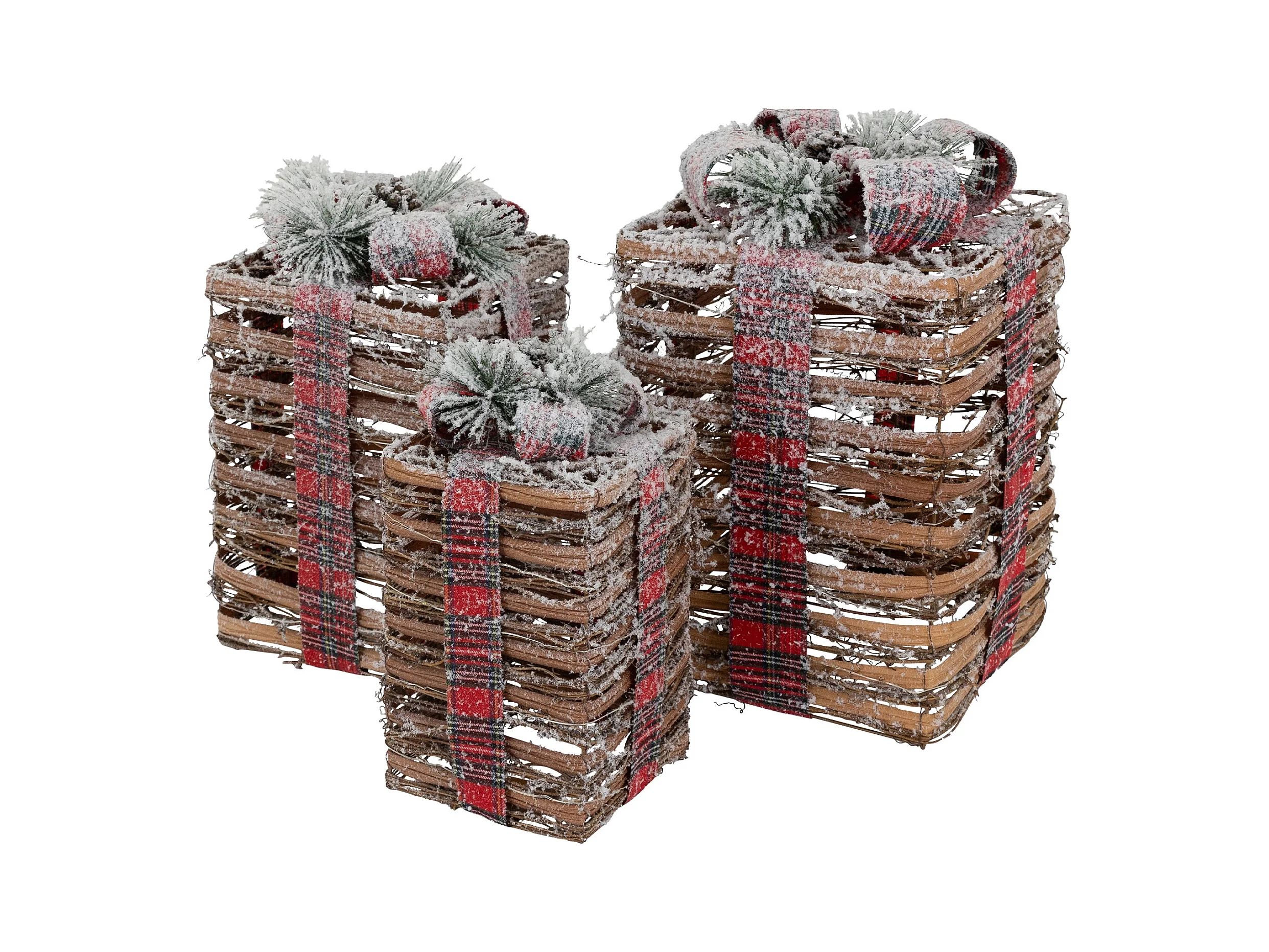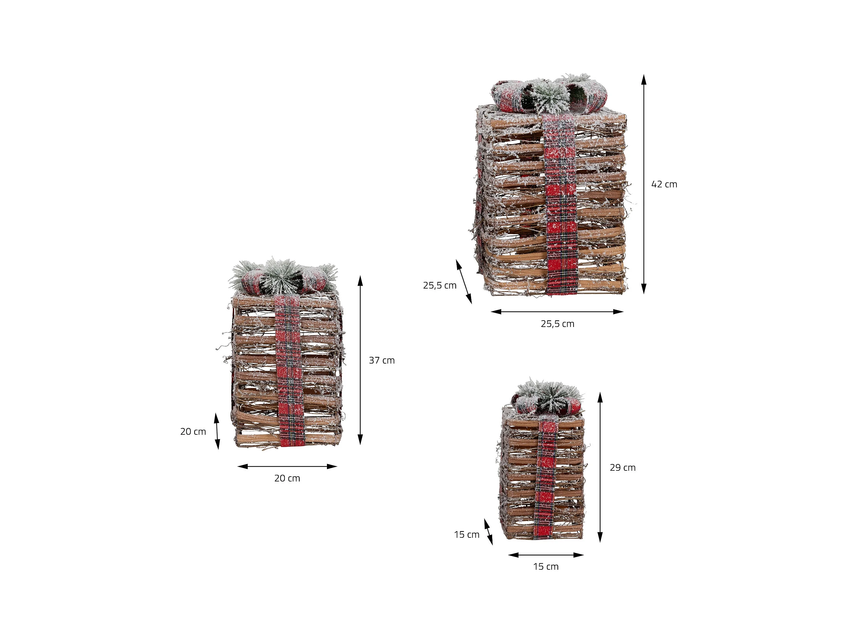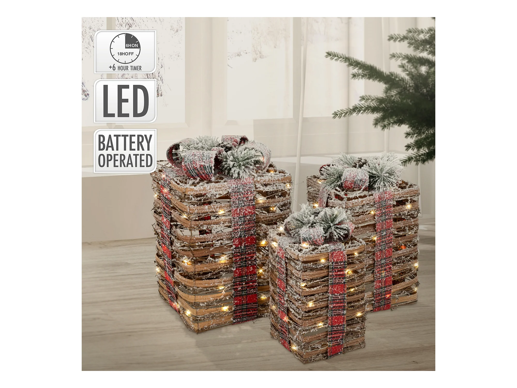 Set di 3 scatole regalo a LED in rattan timer decorazione natalizia bianco caldo