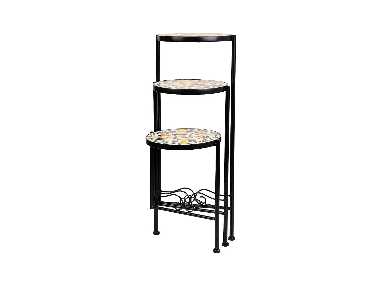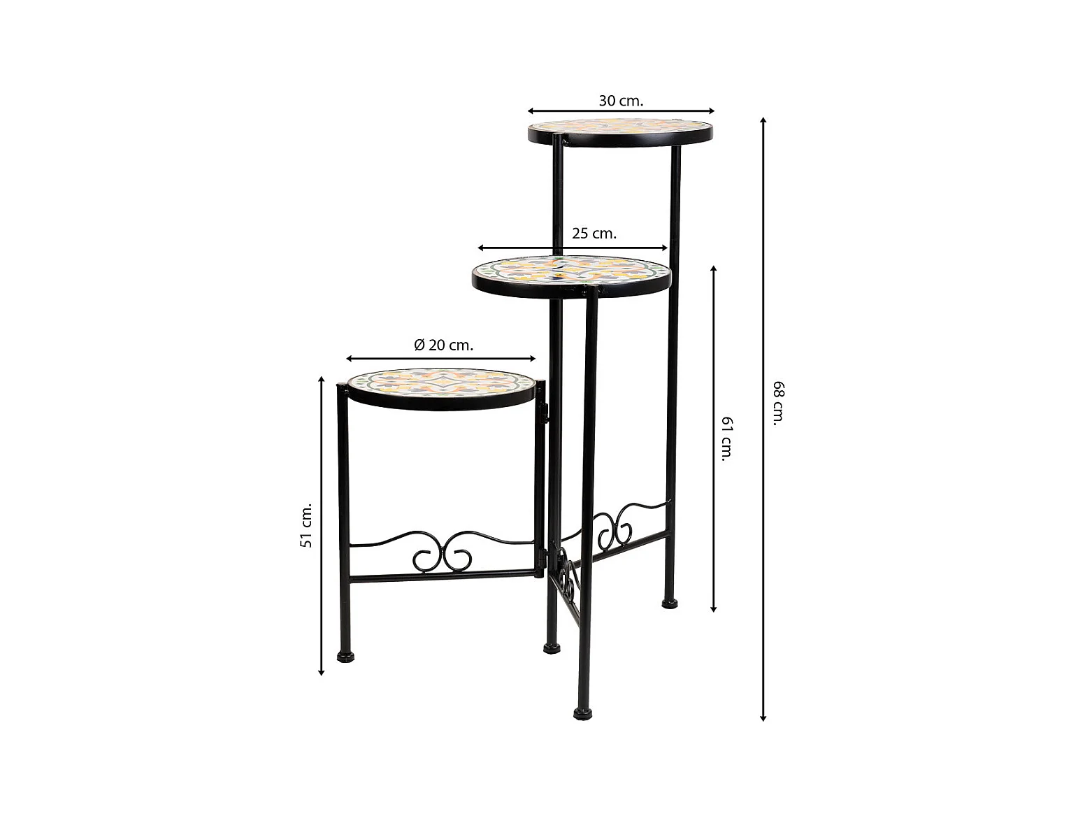 Supporto in mosaico e ferro battuto nero d30x68h-d25x61h-d20x51h