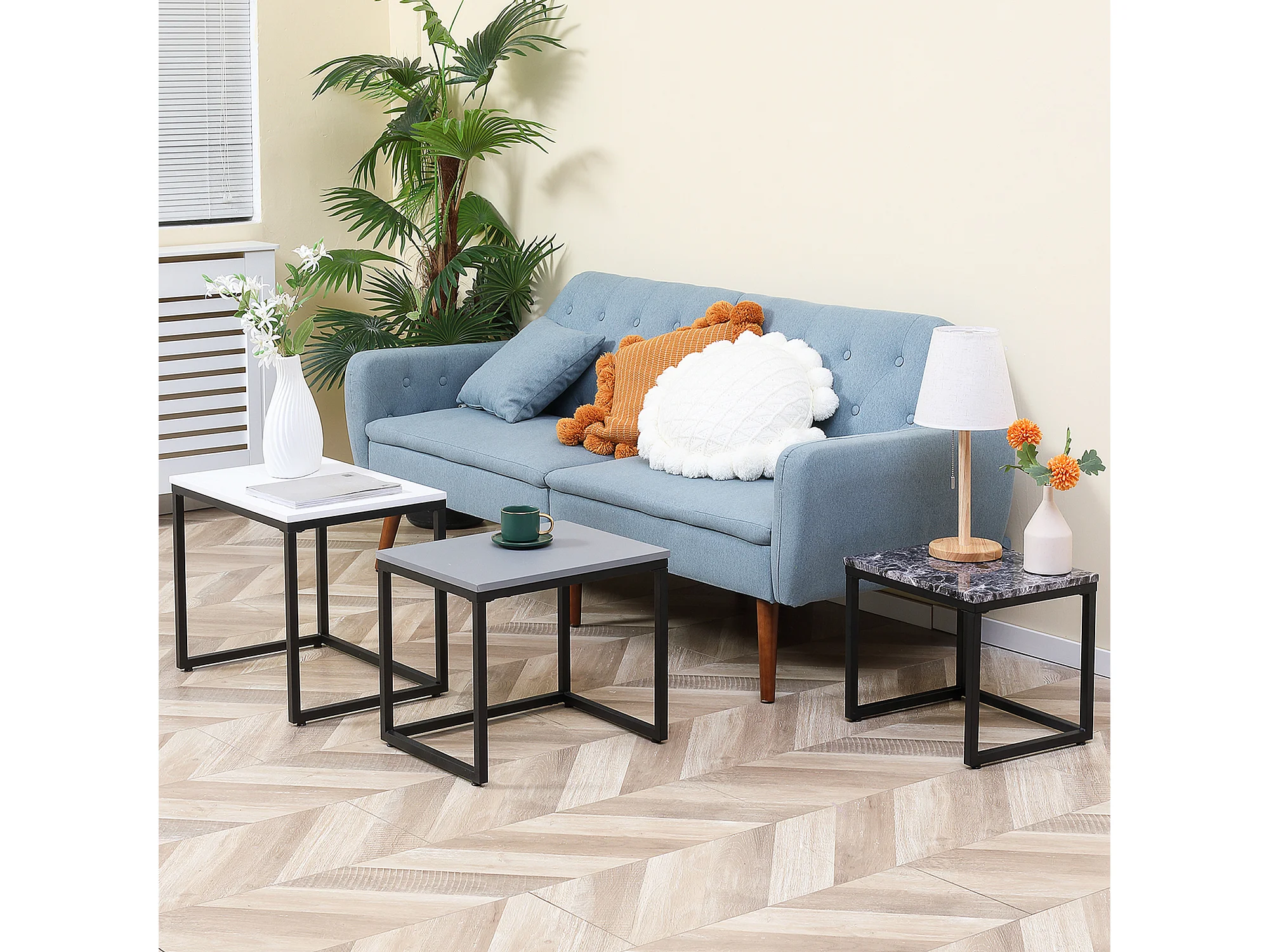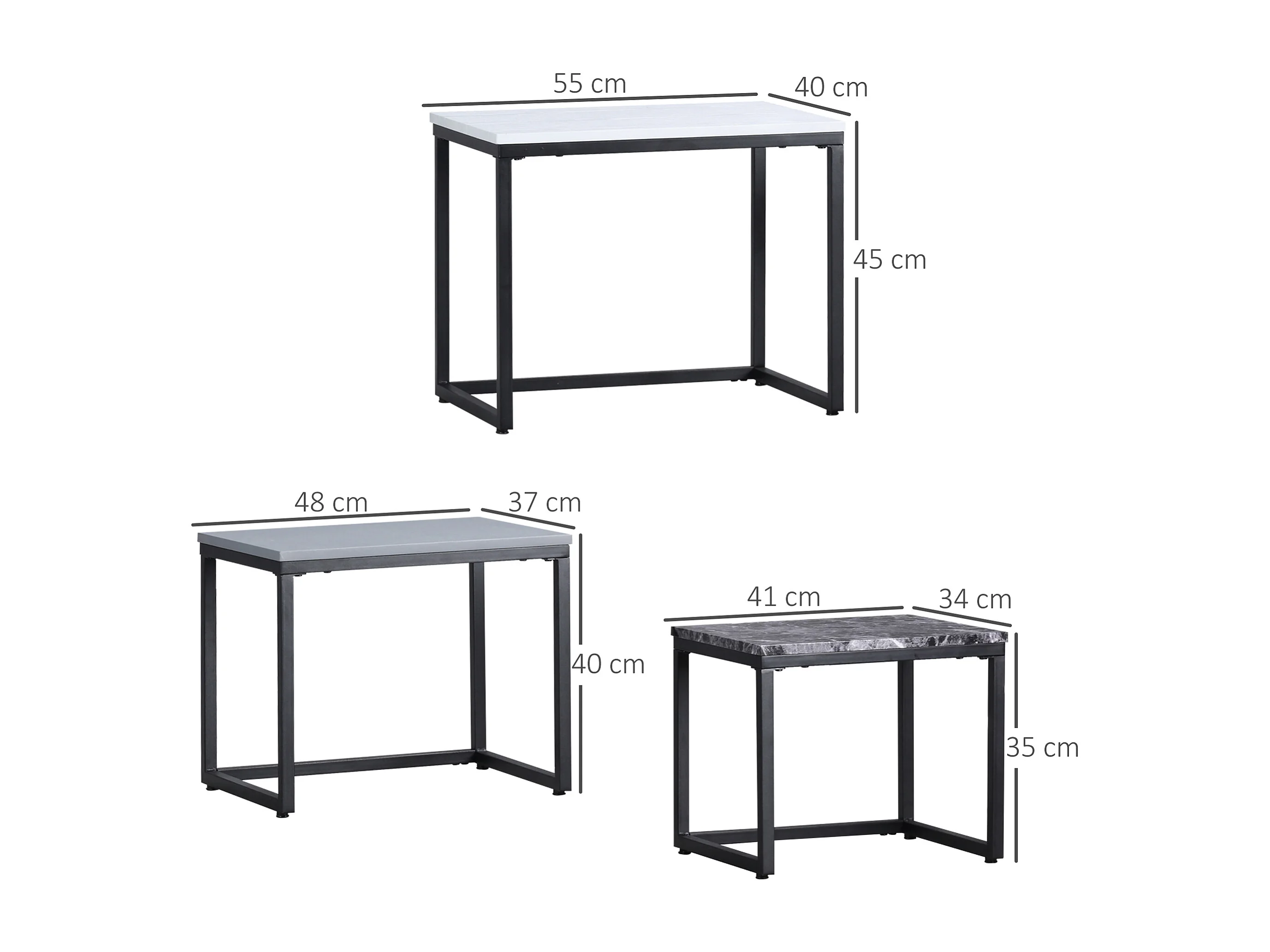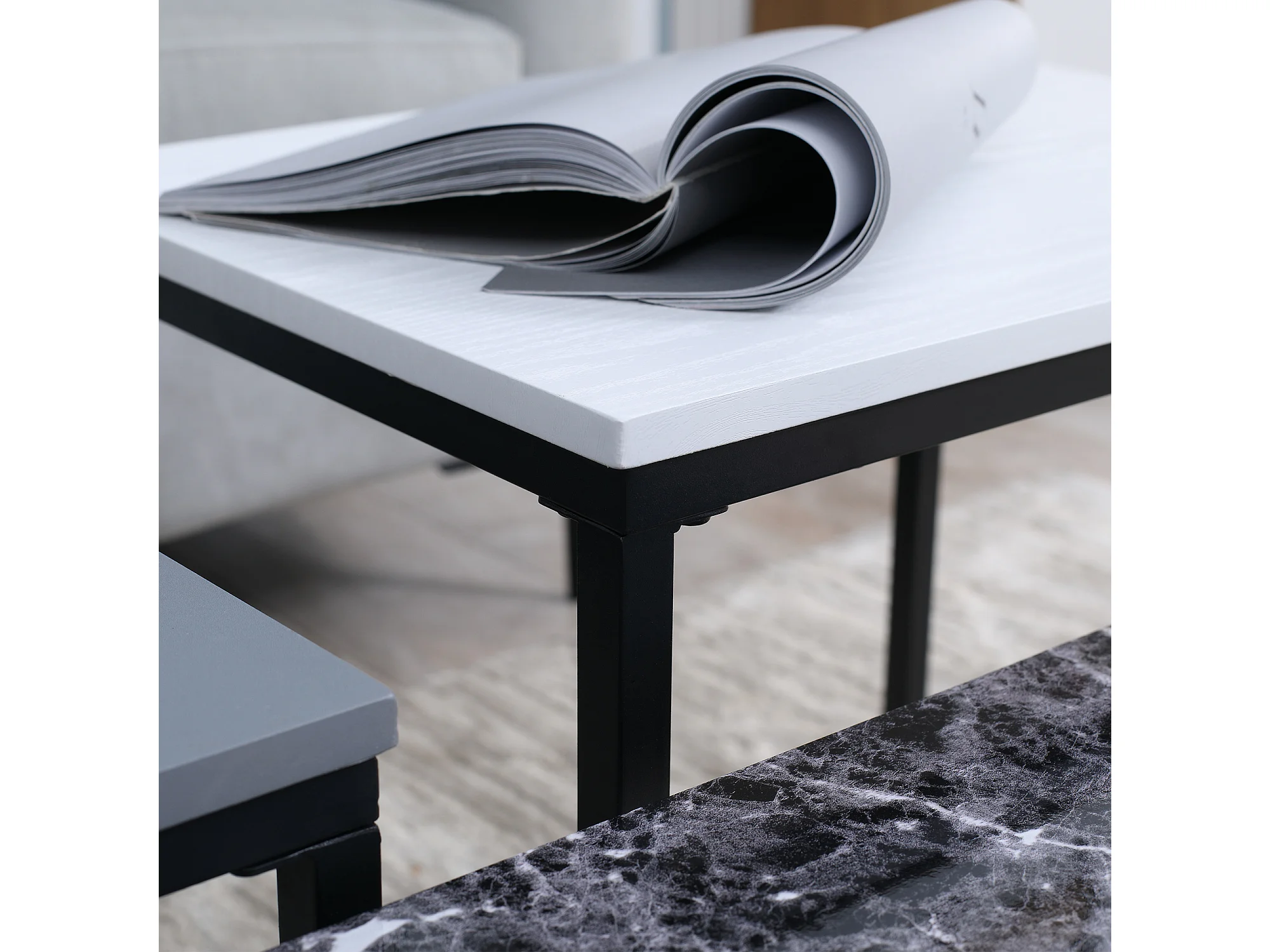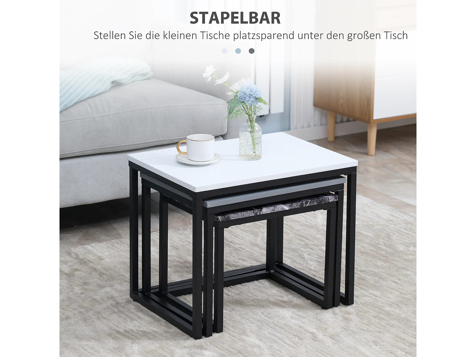 Set di 3 tavolini impilabili, piano in MDF laccato, gambe in metallo, bianco/grigio/nero (55x40x45cm)