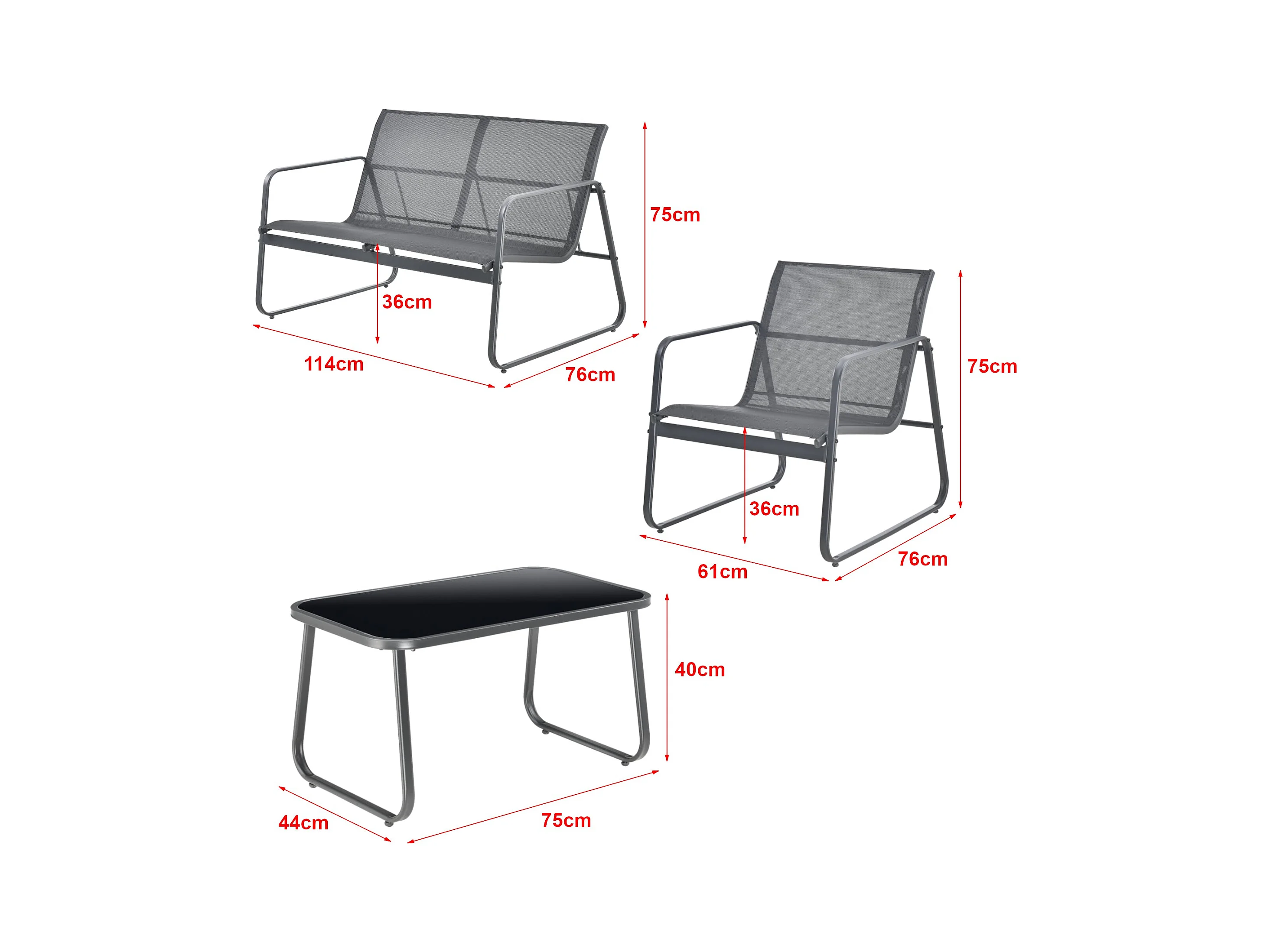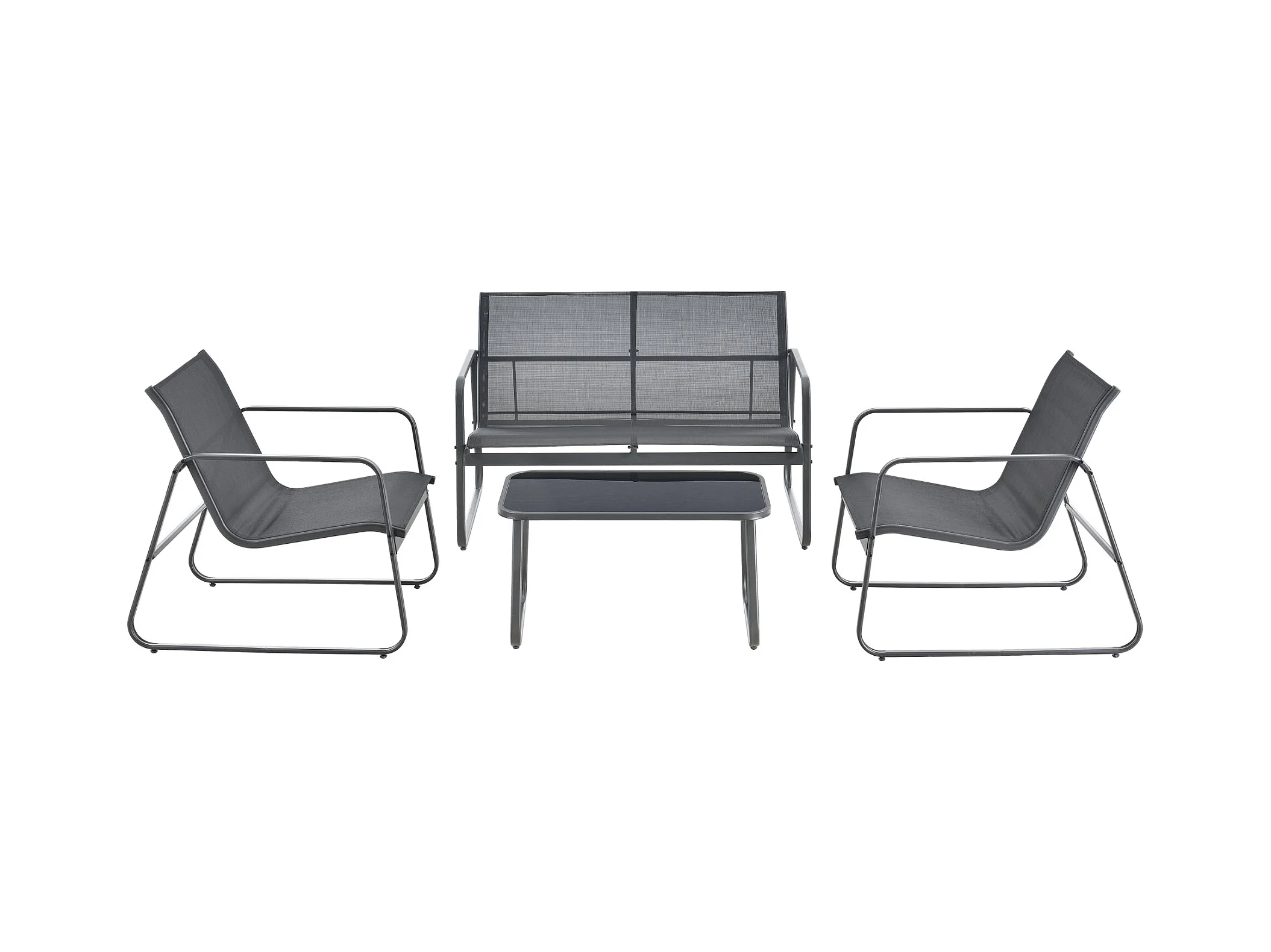 Set di 4 mobili da giardino Gagra acciaio PVC poliestere nero grigio chiaro 03_0008232