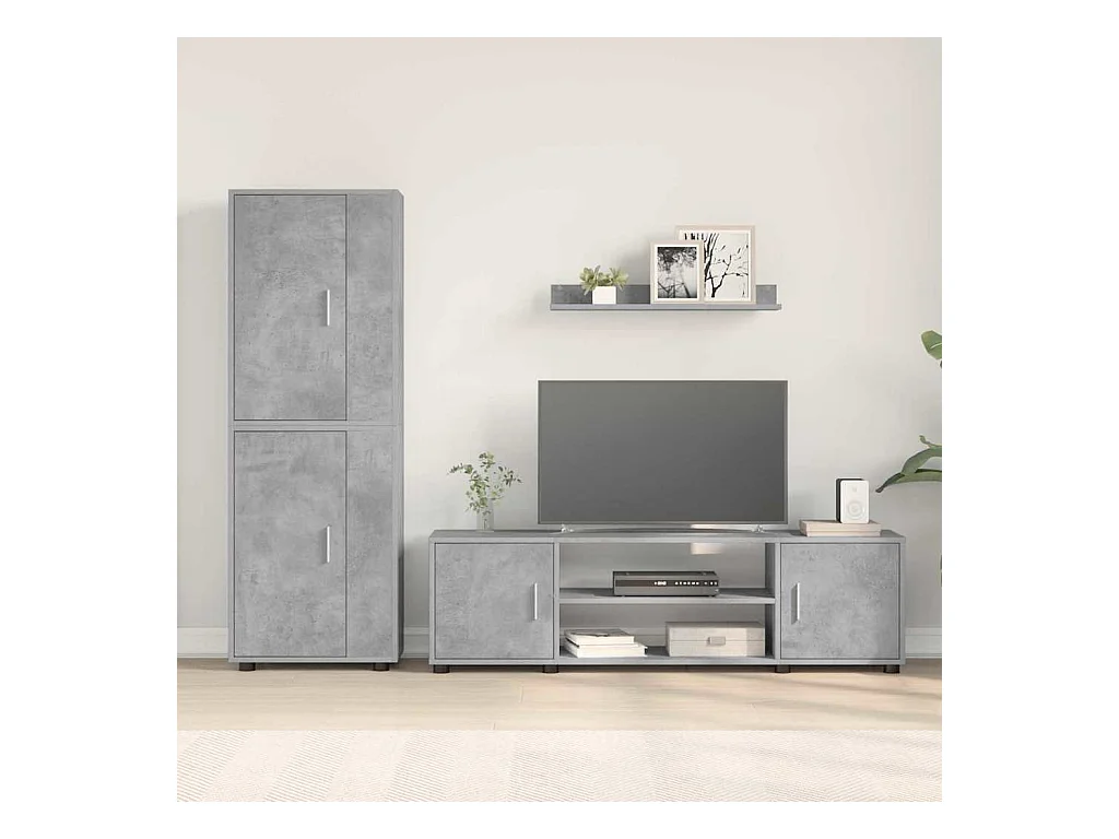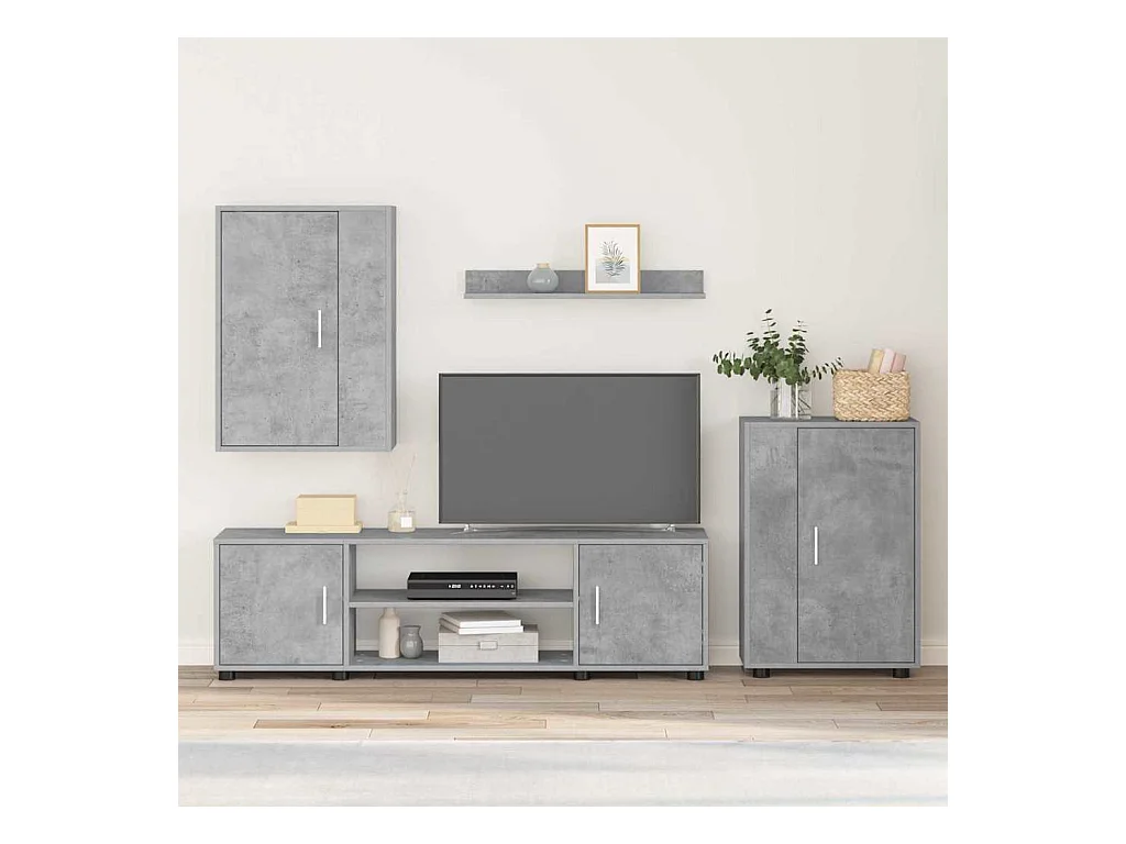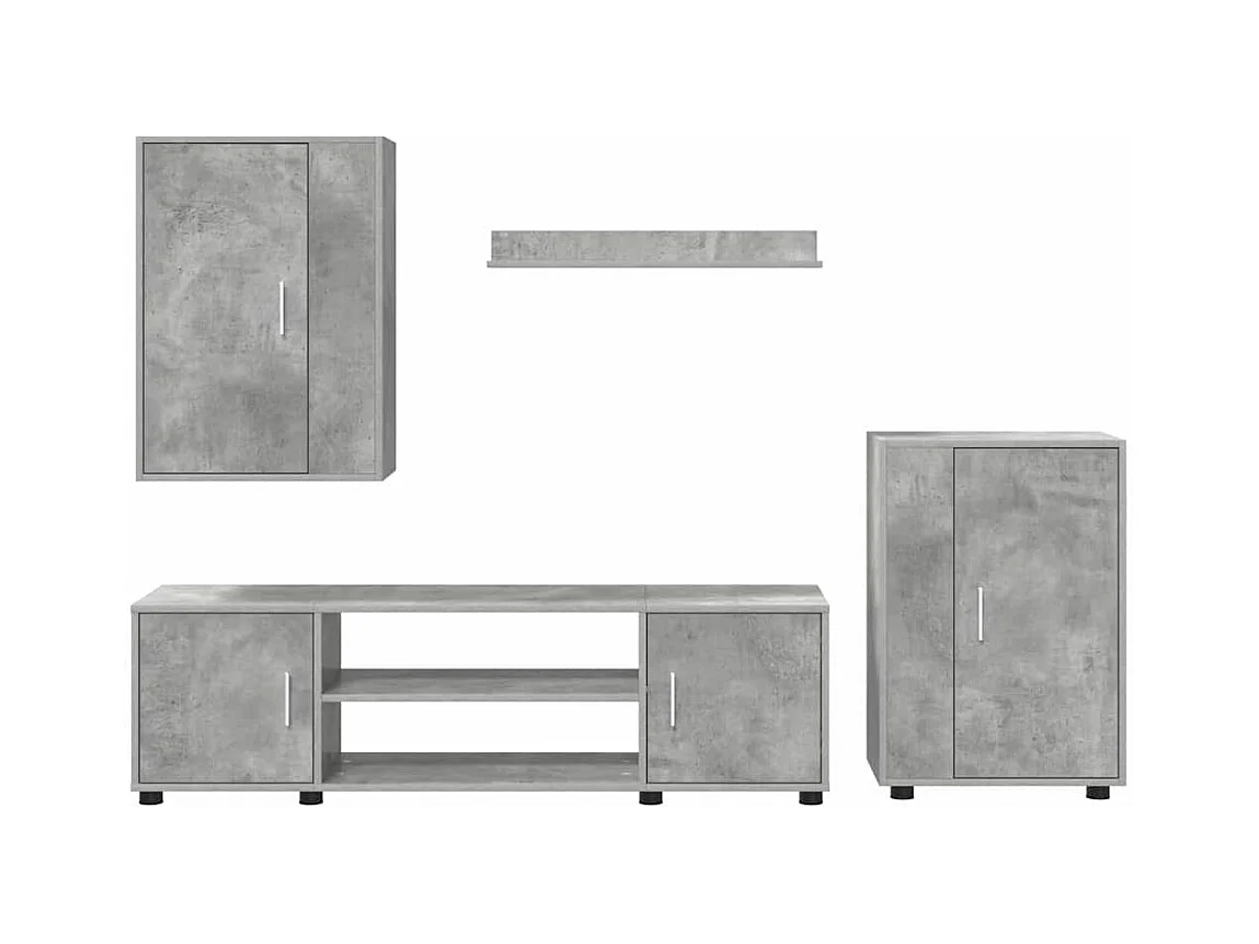 Set di 4 mobili porta TV da parete, 4 pezzi, grigio cemento