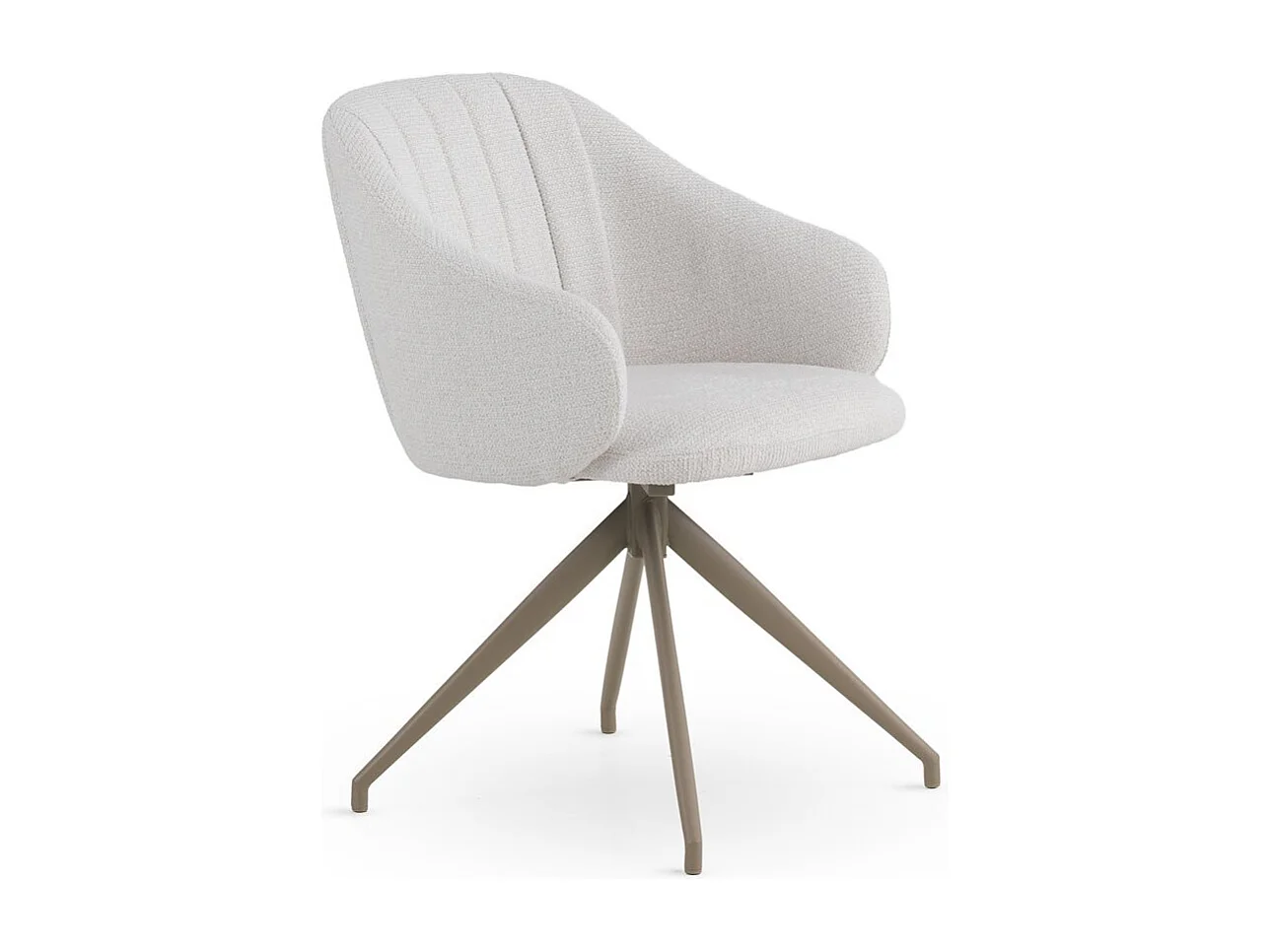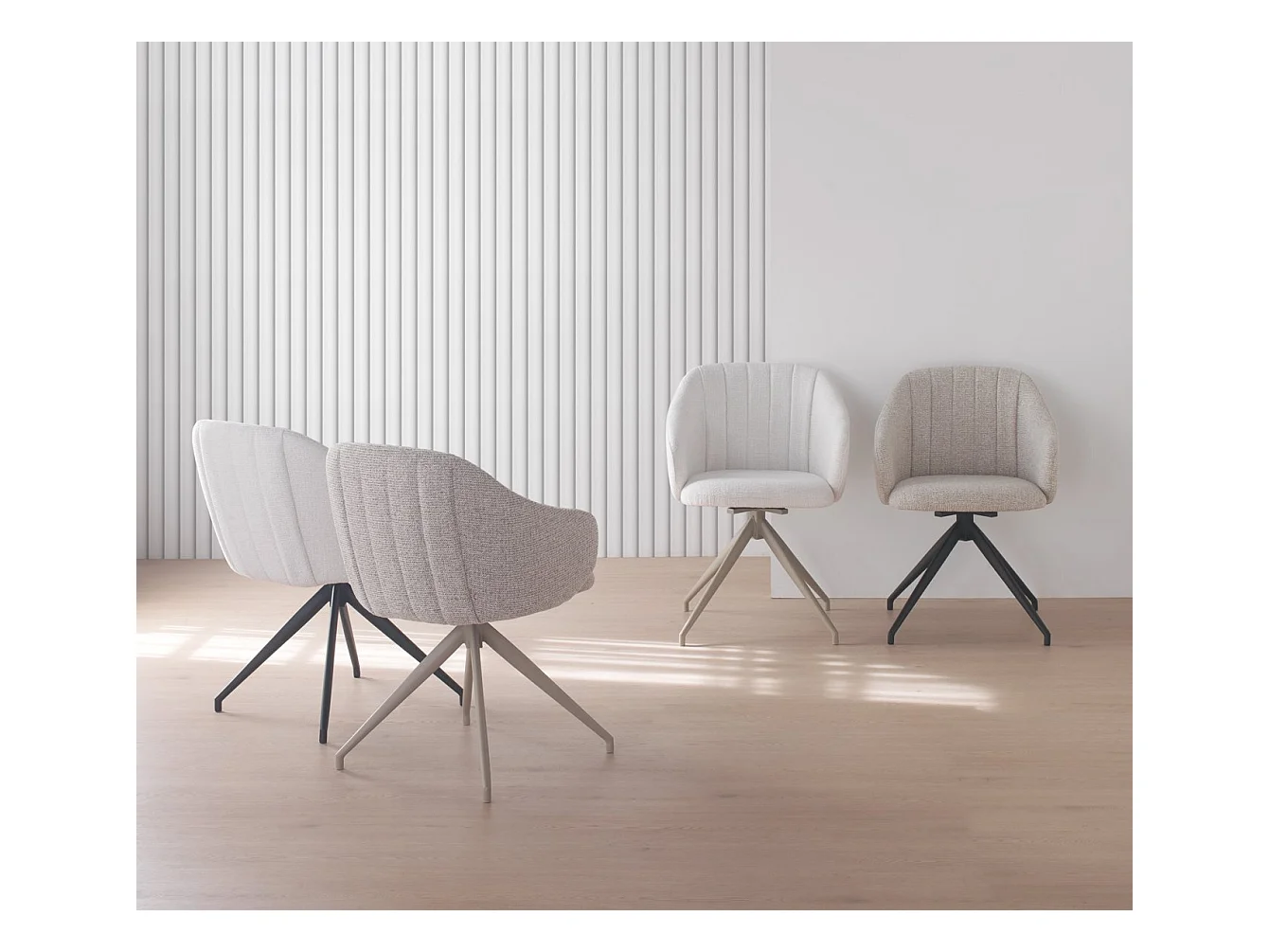 Set di 4 poltrone girevoli rivestite in ciniglia color crema