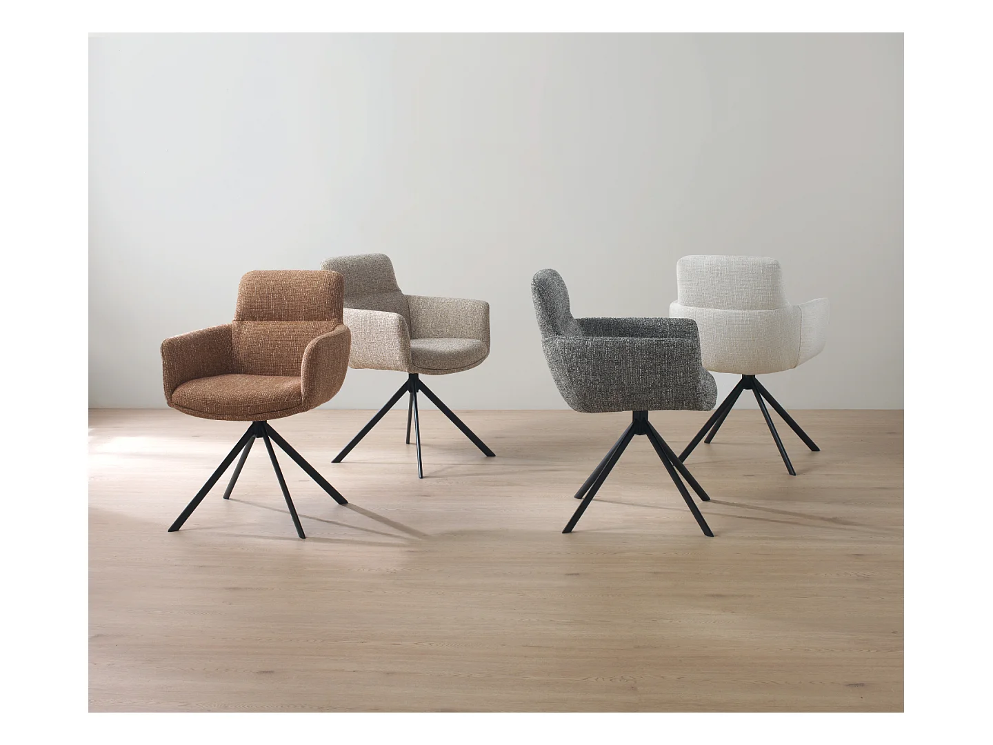 Set di 4 poltrone imbottite in tweed terracotta screziato