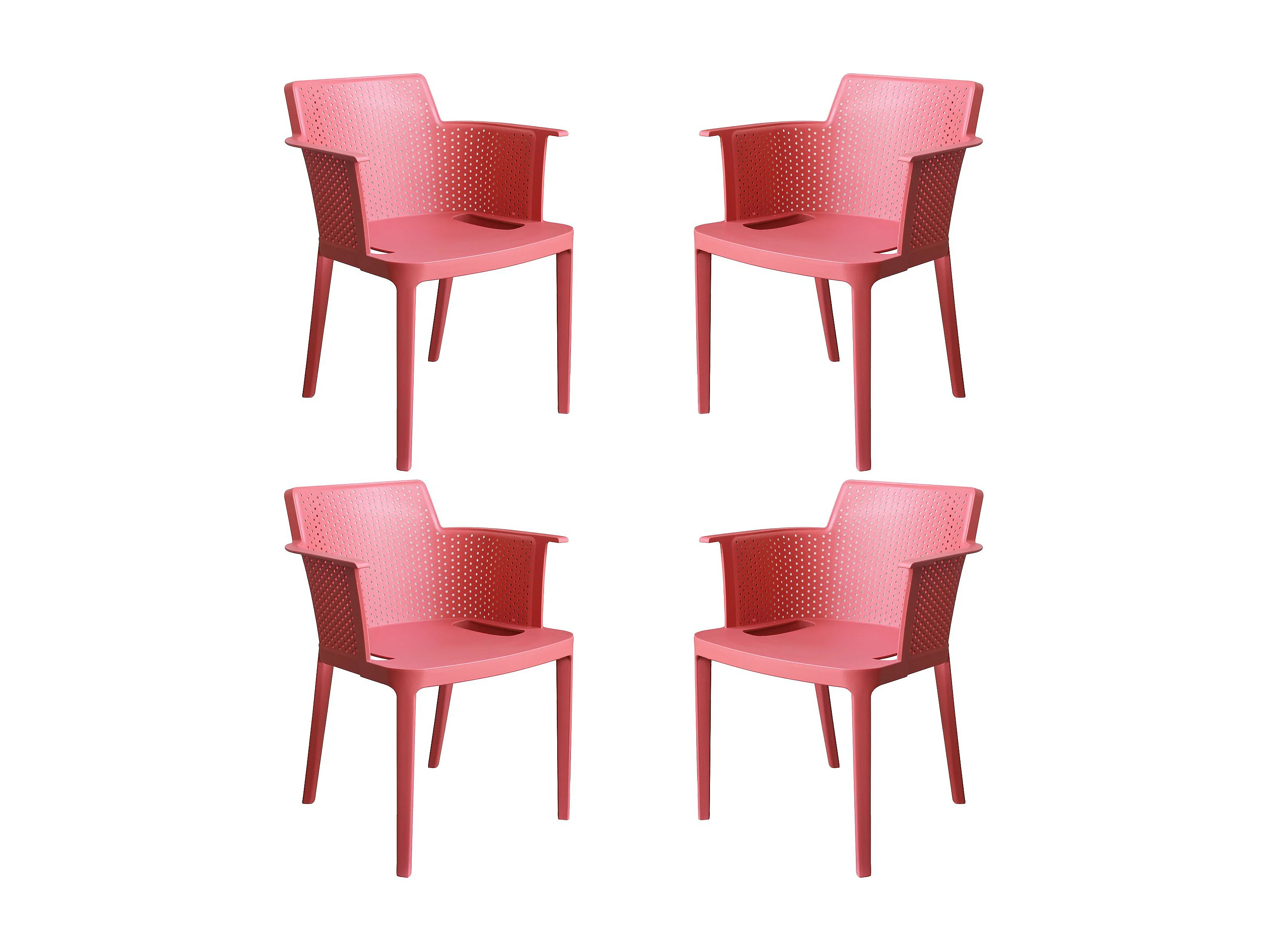 MilaniHome.it - set di 4 Poltrone in plastica per esterno giardino interno sala da pranzo colorata polipropilenedi coloreRosso corallo