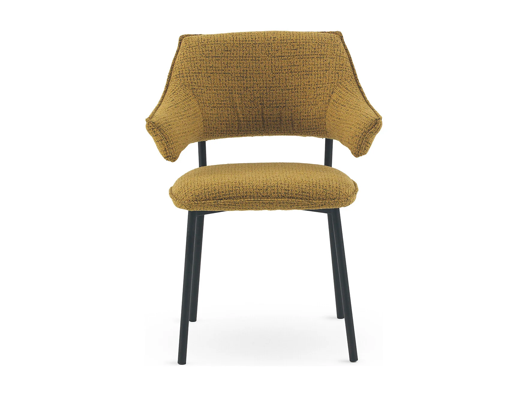 Sedia di design in tessuto giallo senape con gambe in metallo nero Assia