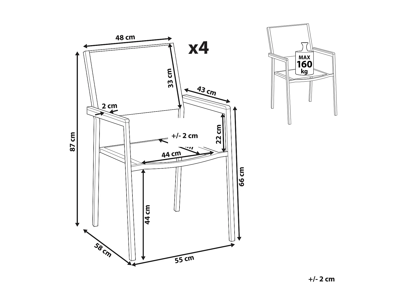 Set di 4 sedie da giardino GROSSETO Acciaio inox Grigio