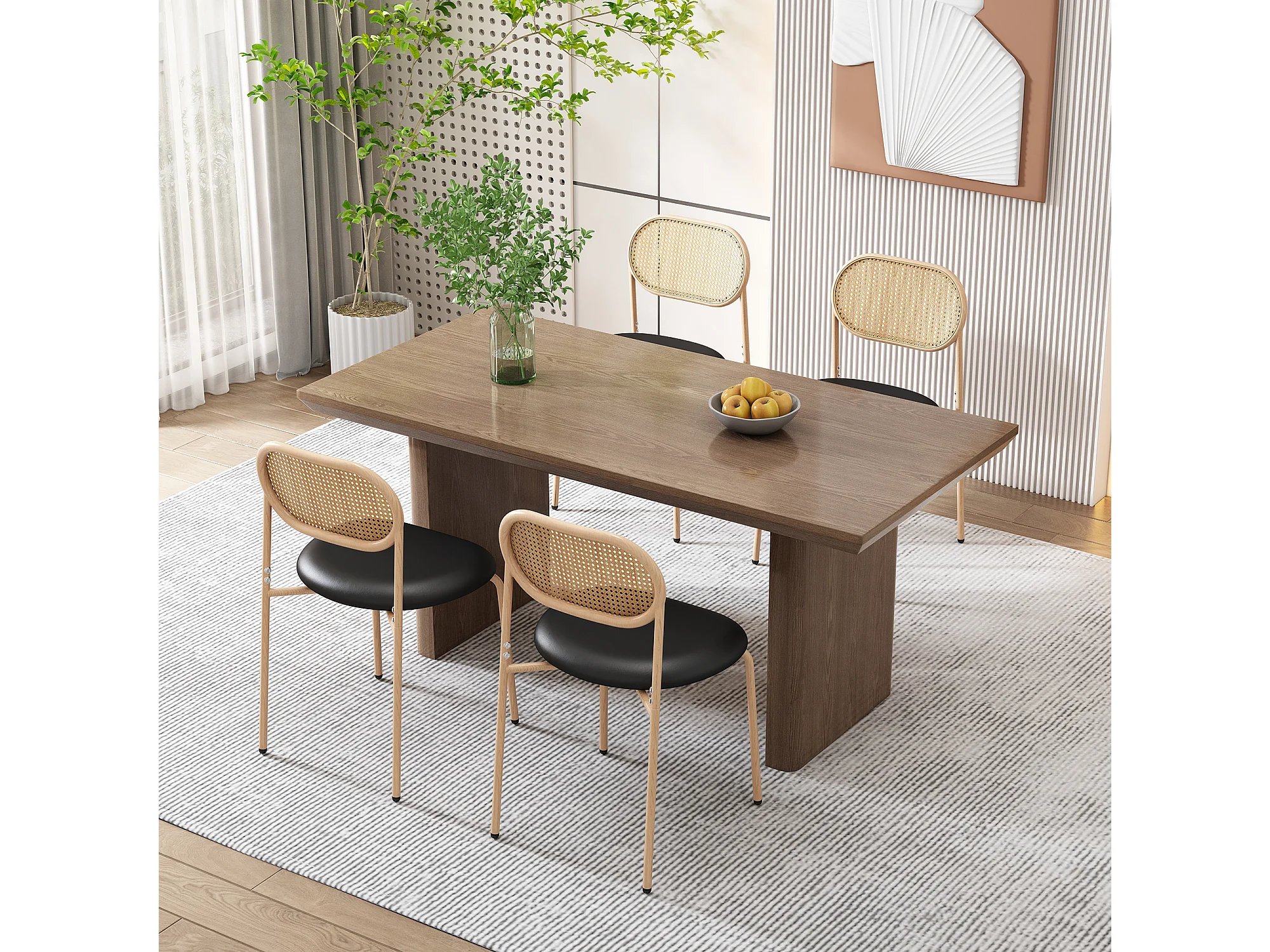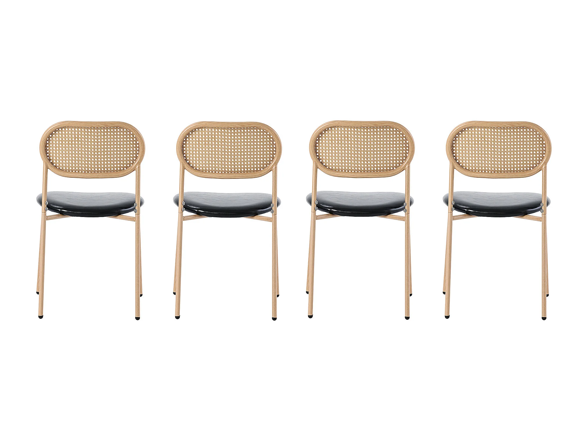 Set di 4 sedie con seduta in PU e gambe in metallo, schienali in rattan naturale – nero e marrone