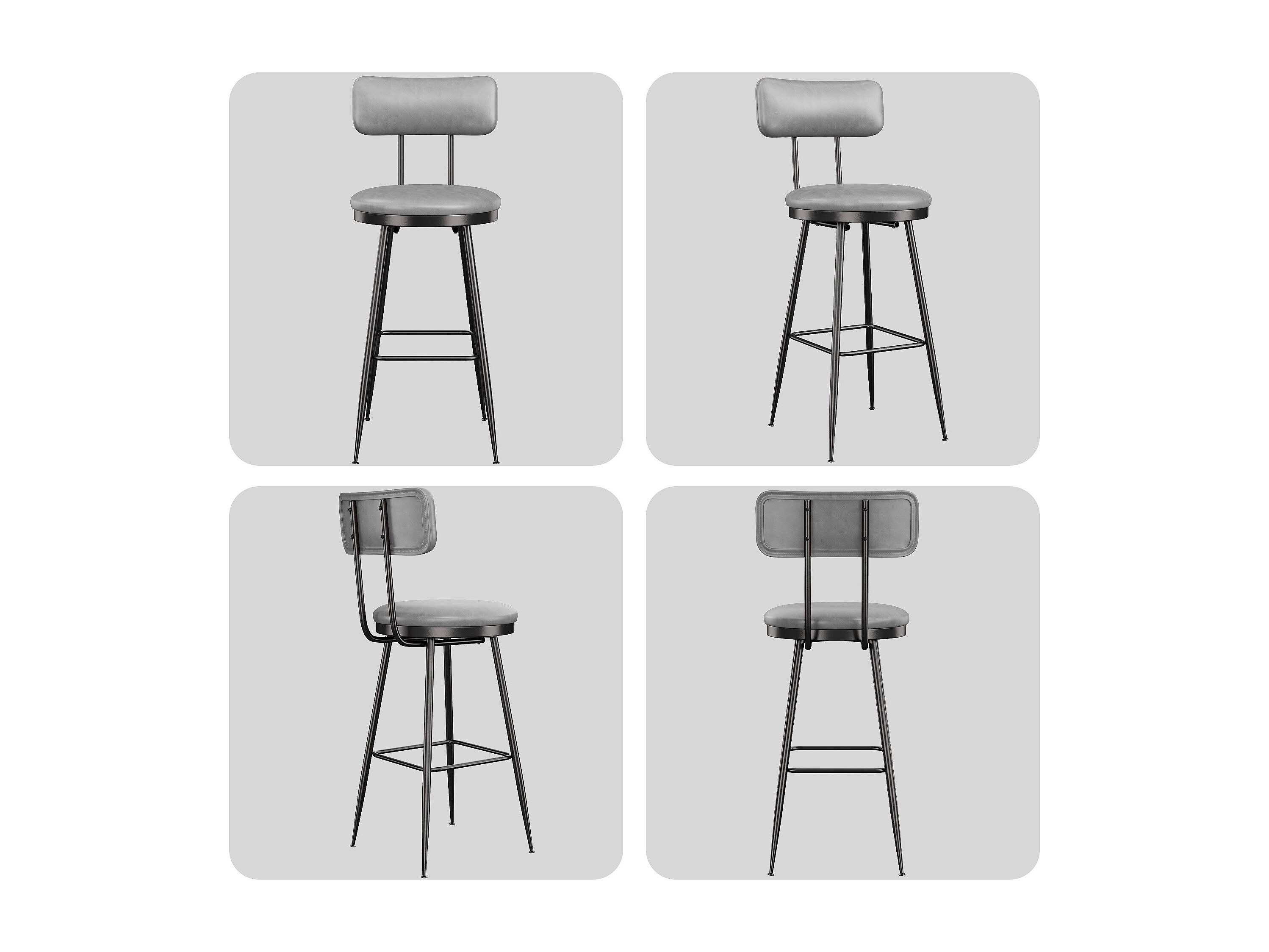 Set di 4 sedie da bar – Grigio, stile industriale, schienale, altezza 65 cm