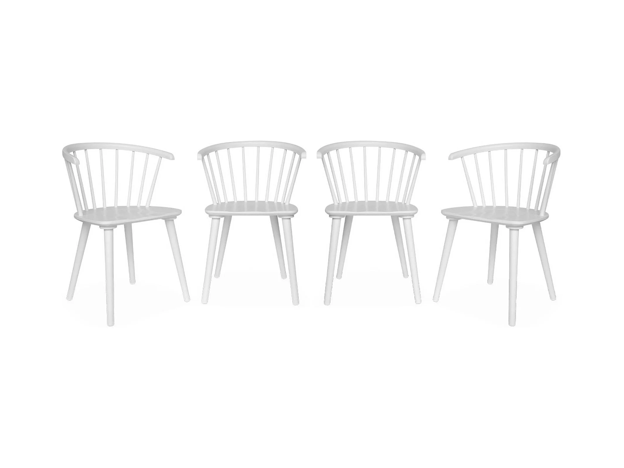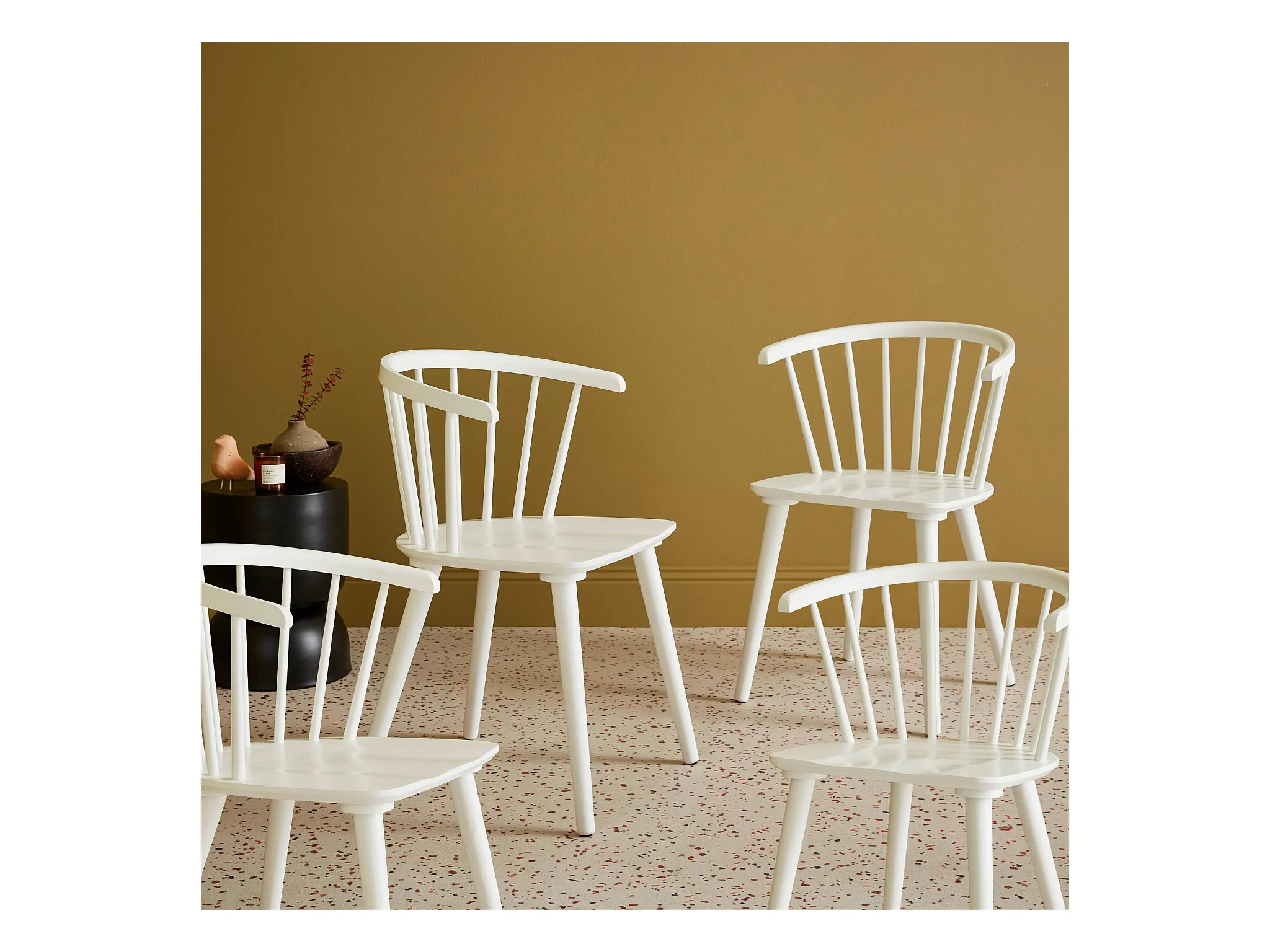 Set di 4 sedie da pranzo in legno massello di gomma, bianche e chiare