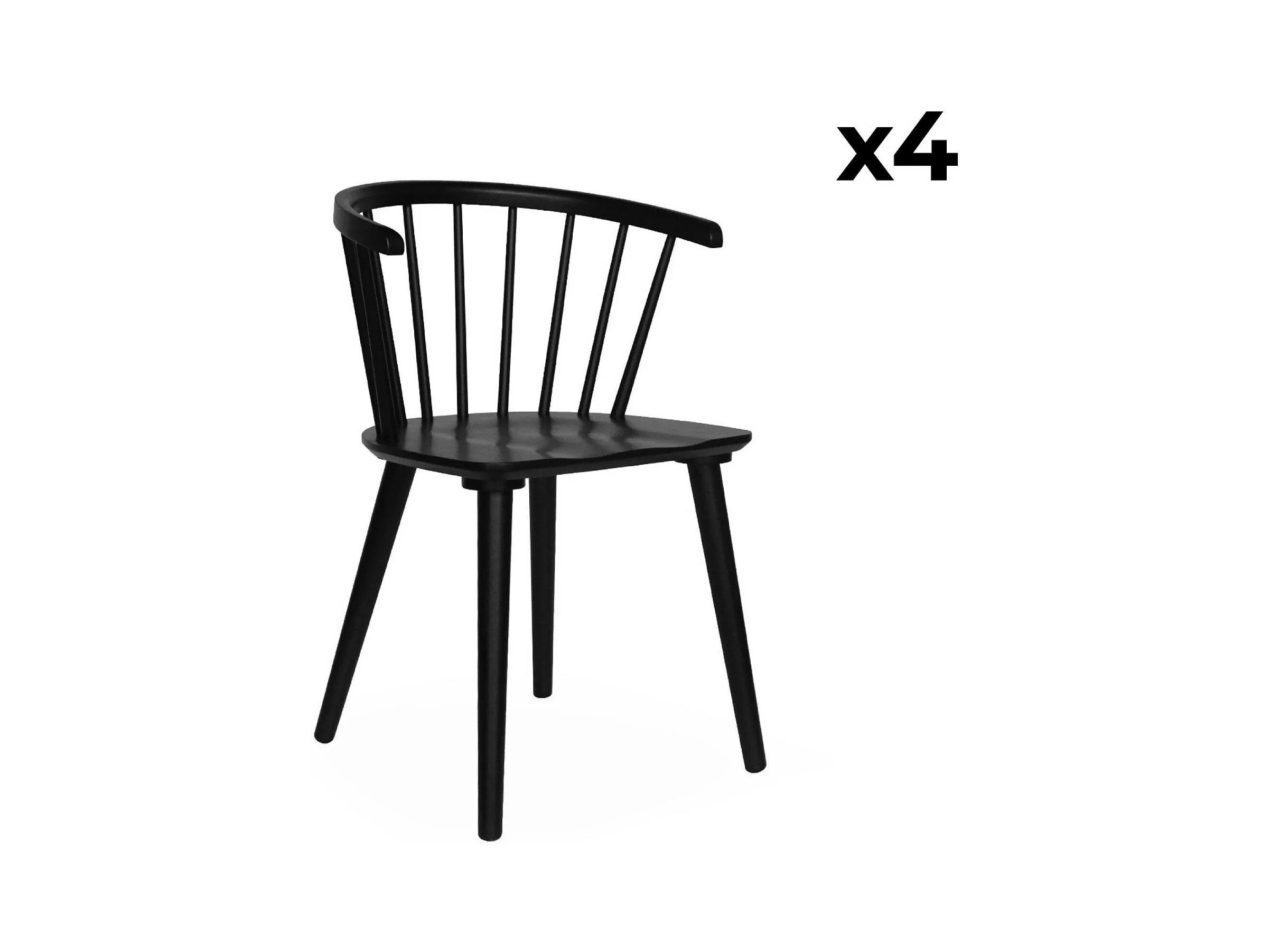 Set di 4 sedie con schienale incrociato in legno massello di mango nero