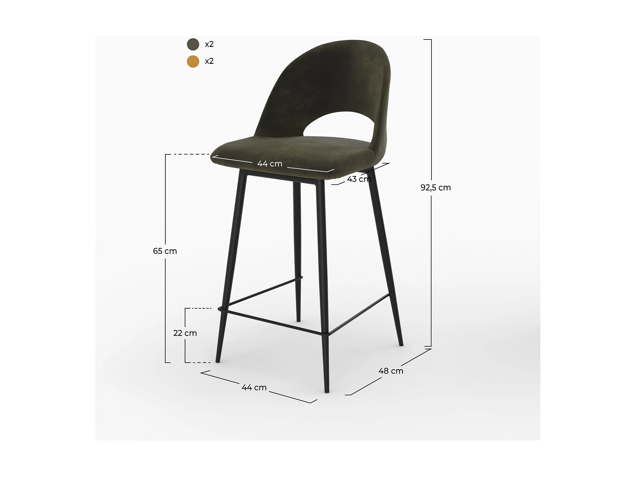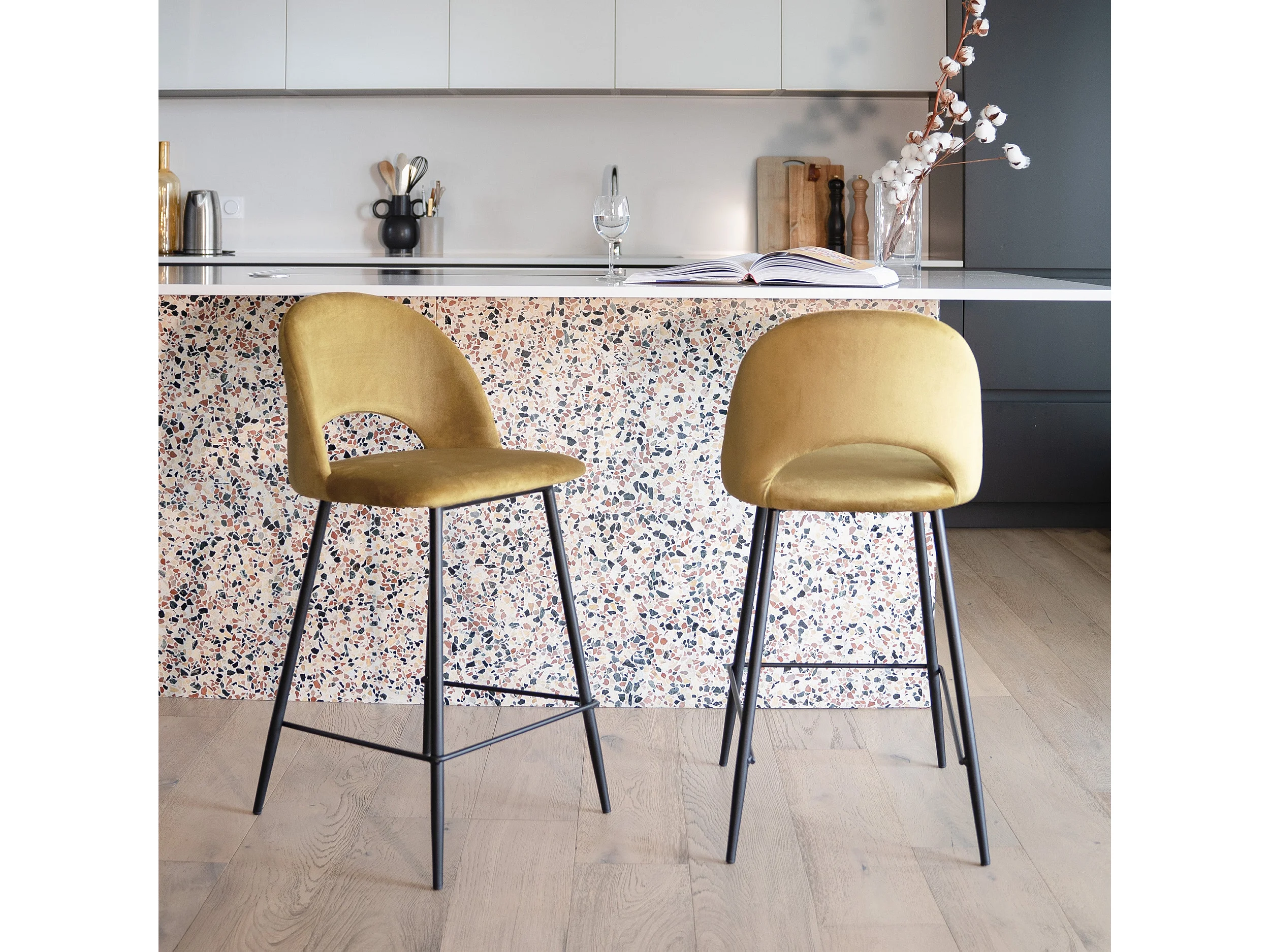 Set di 4 sedie da bar in velluto verde e giallo 65 cm - Pénélope