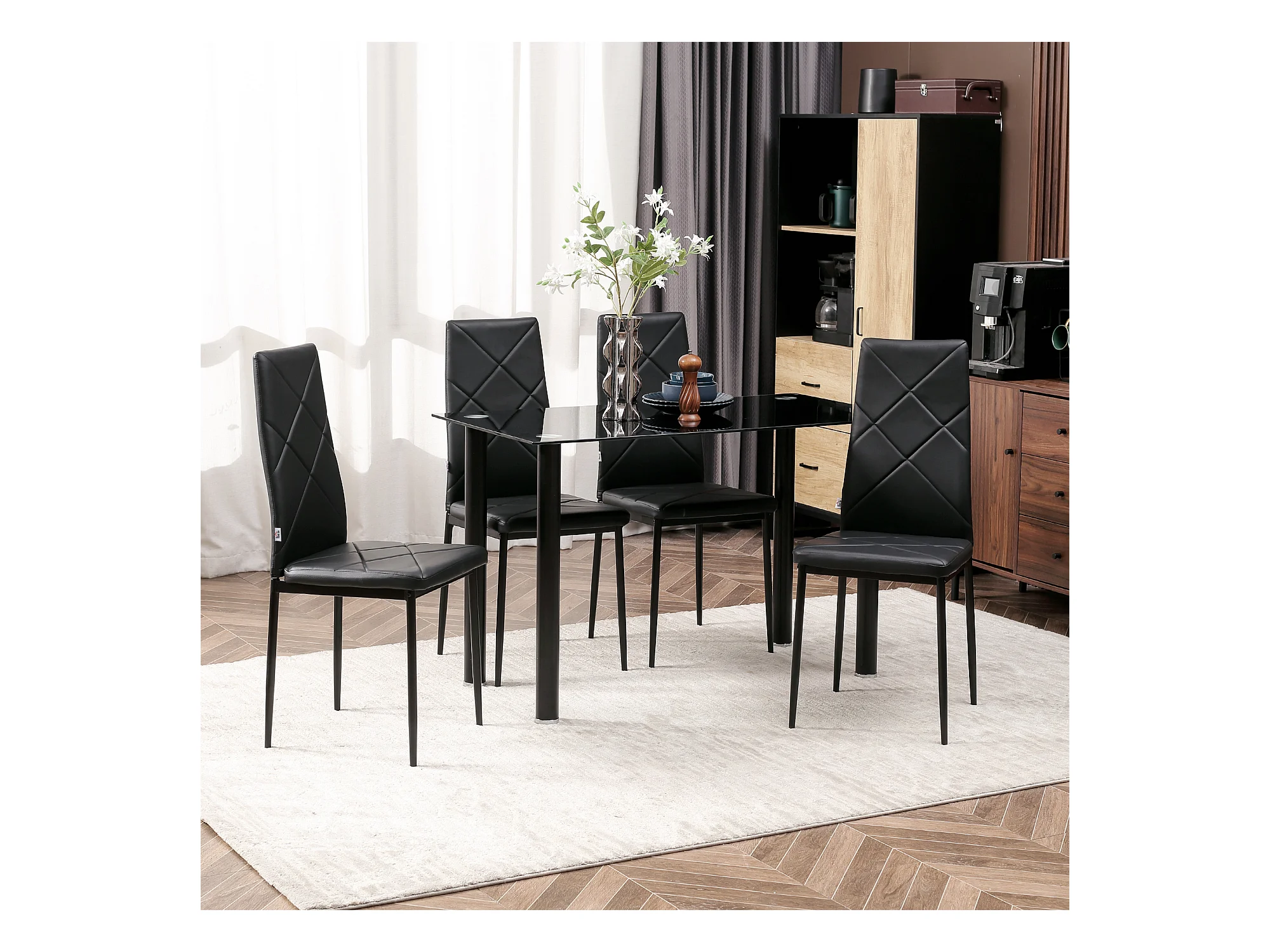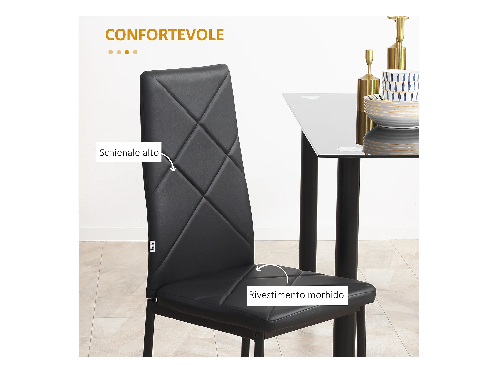 Set di 4 sedie da cucina con schienale alto finta pelle nera