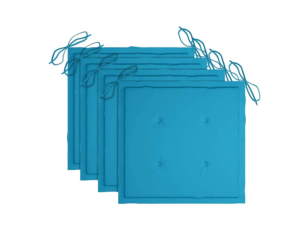 Set di 4 sedie da giardino con cuscini azzurri in teak massello