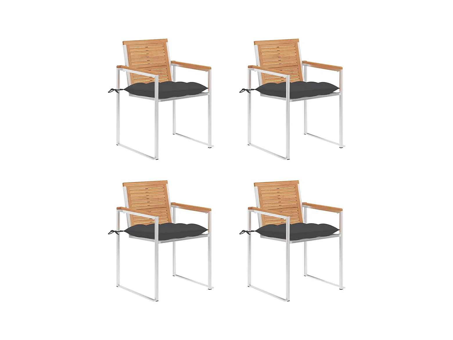 Set di 4 sedie da giardino con cuscini in legno massello di acacia