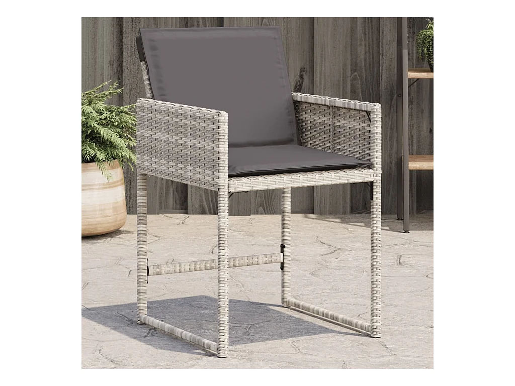 Sedie da giardino con cuscini, set da 4, grigio, resina intrecciata