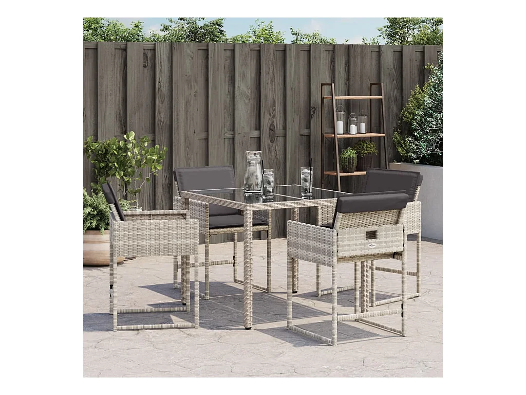 Set di 4 sedie da giardino con cuscini in polyrattan grigio chiaro