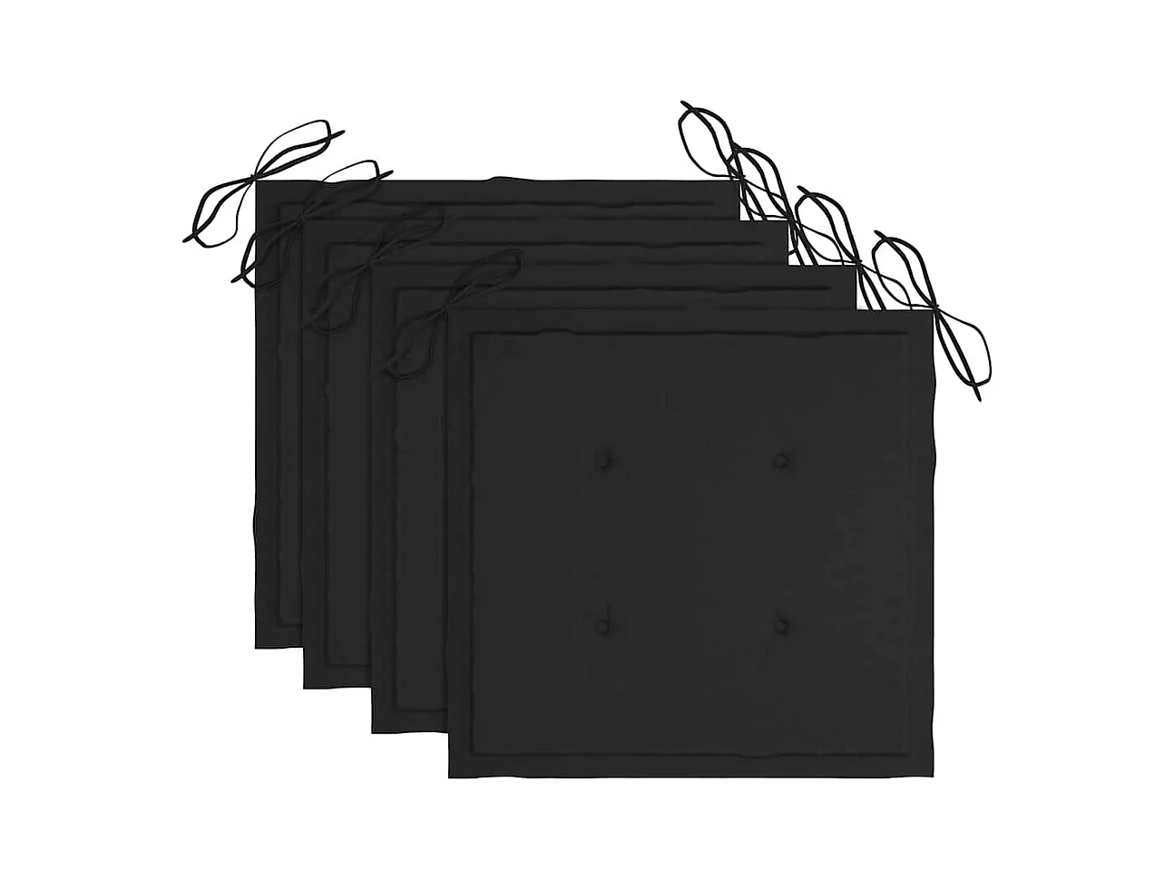 Set di 4 sedie da giardino e cuscini neri in legno massello di teak