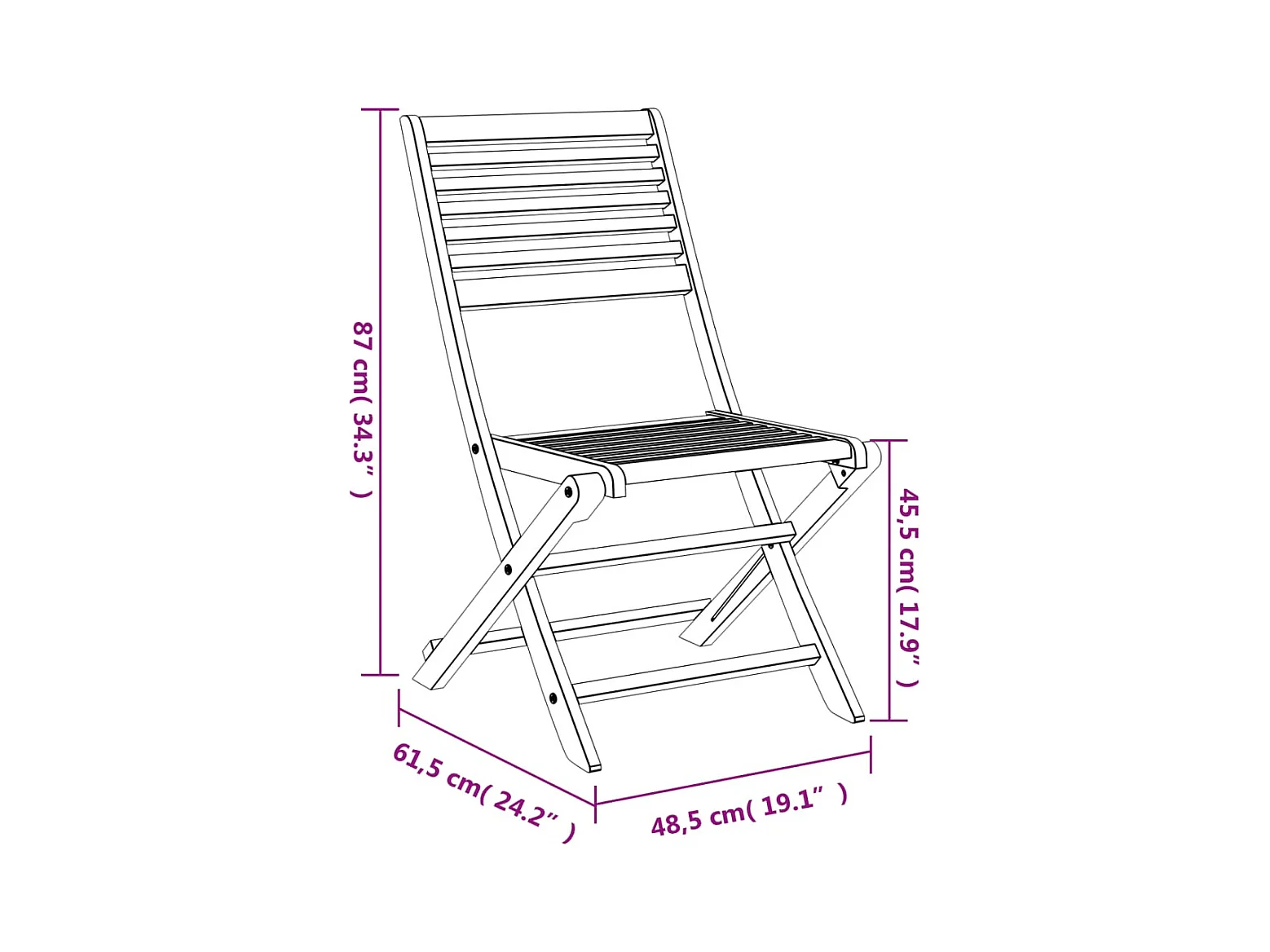 Set di 4 sedie da giardino pieghevoli, in legno massello di acacia