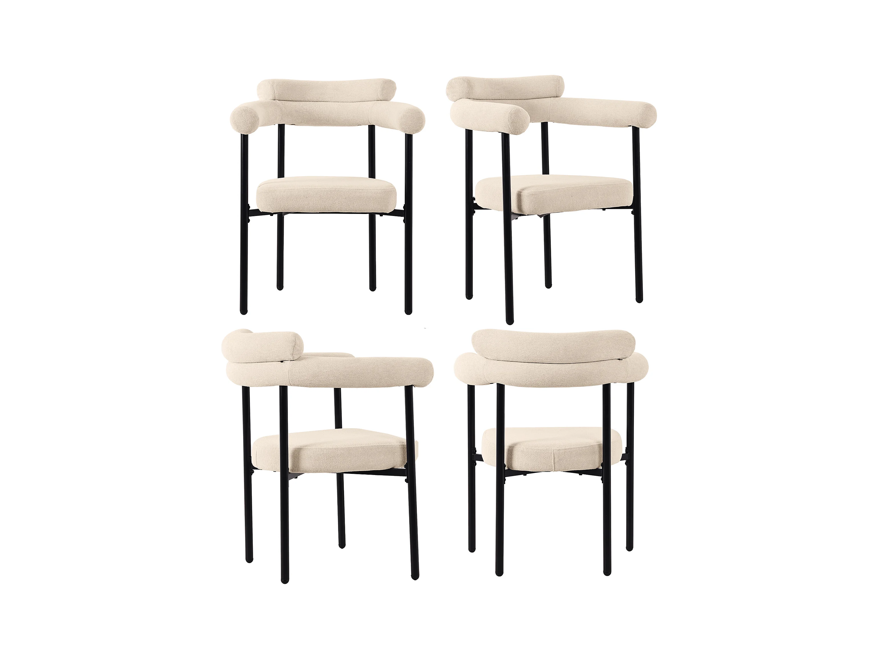 Set di 4 sedie da pranzo beige - Sedia da pranzo con schienale e braccioli - pelle scamosciata - gambe in metallo nero