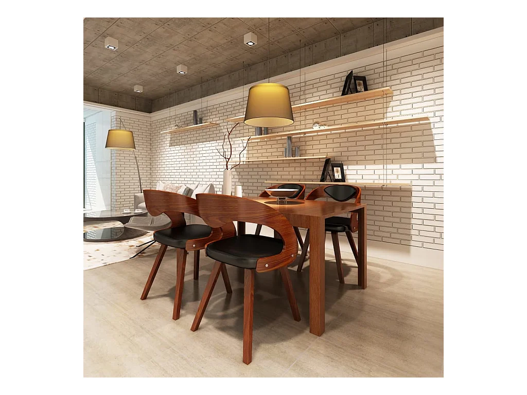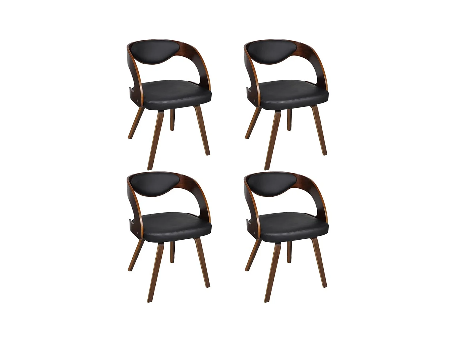 Set di 4 sedie da pranzo in legno curvato marrone e similpelle