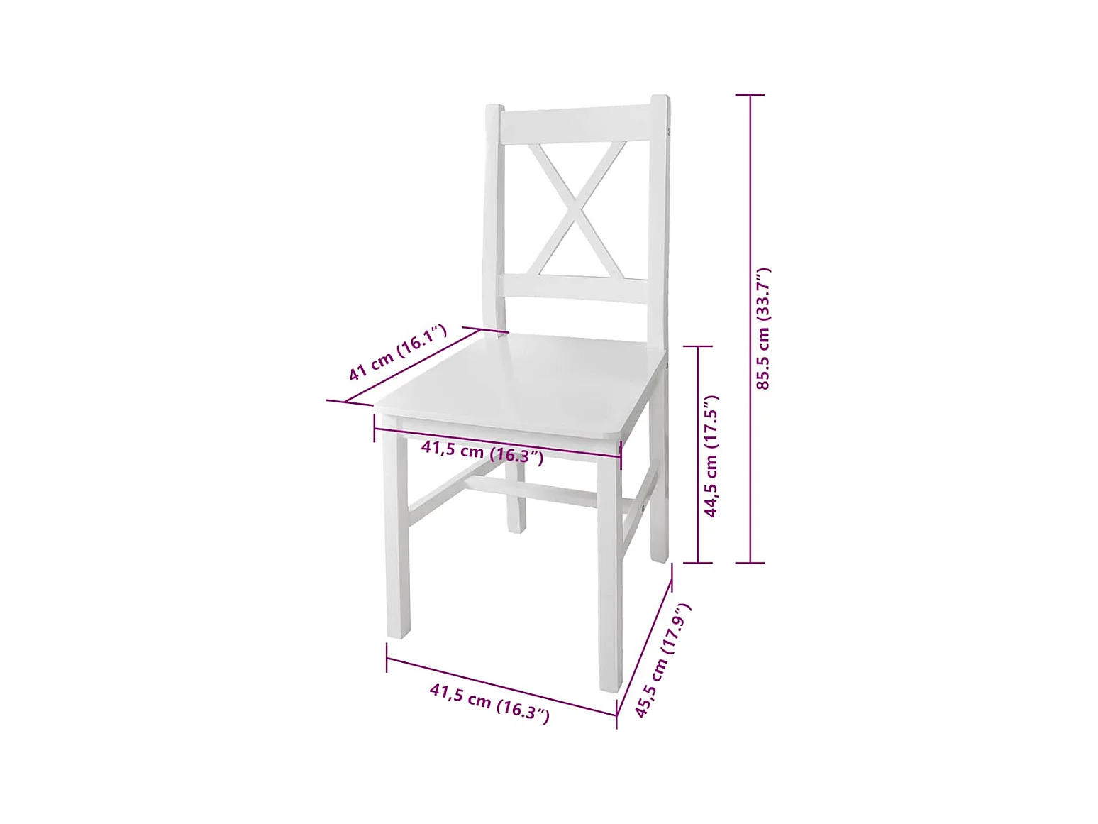 Set di 4 sedie da pranzo con cuscini in legno massello bianco