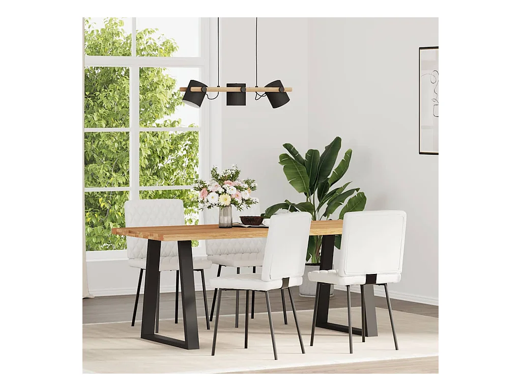 Set di 4 sedie da pranzo in legno massello di gomma, bianche e chiare