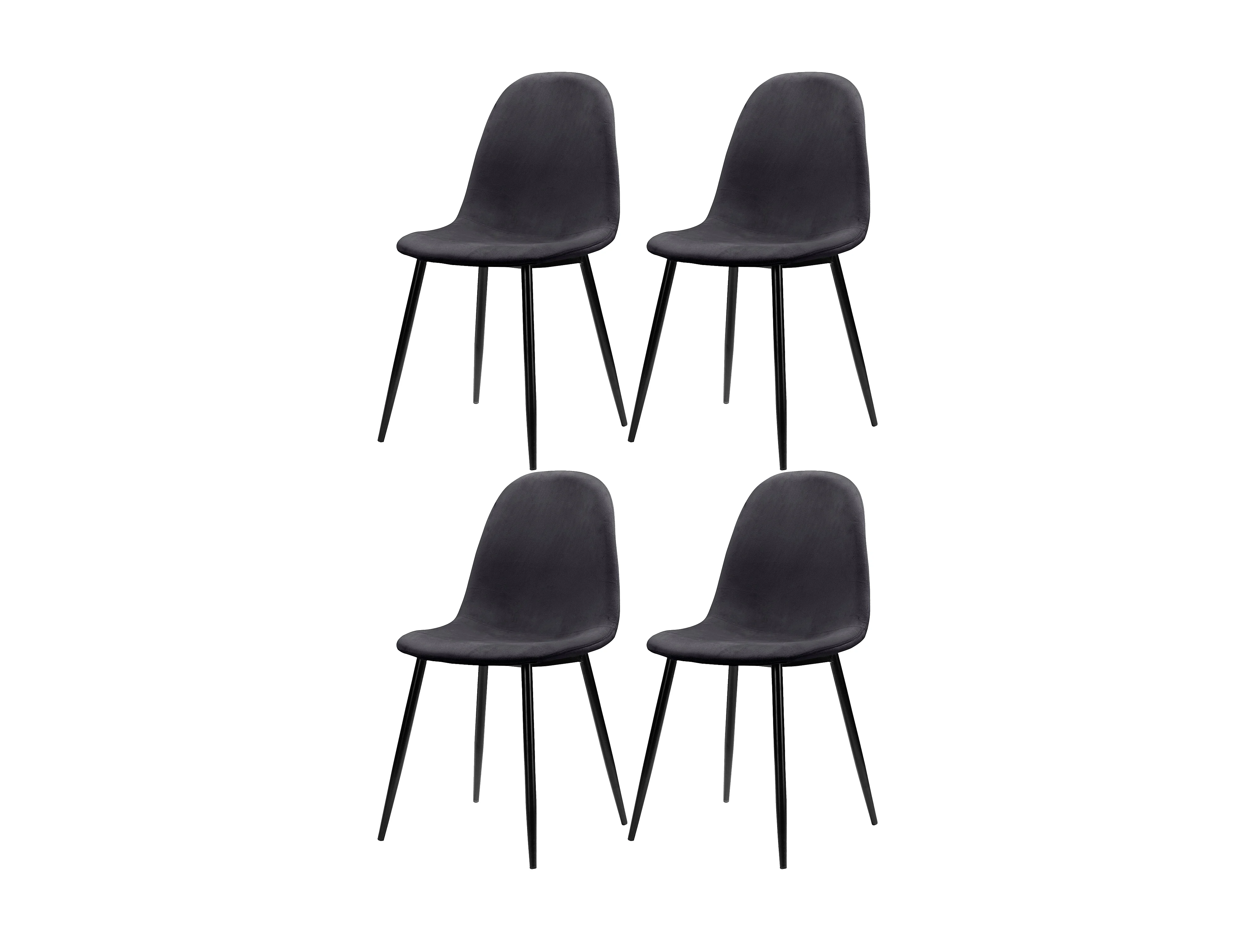 Set di 4 sedie da pranzo in velluto antracite e gambe in metallo nero