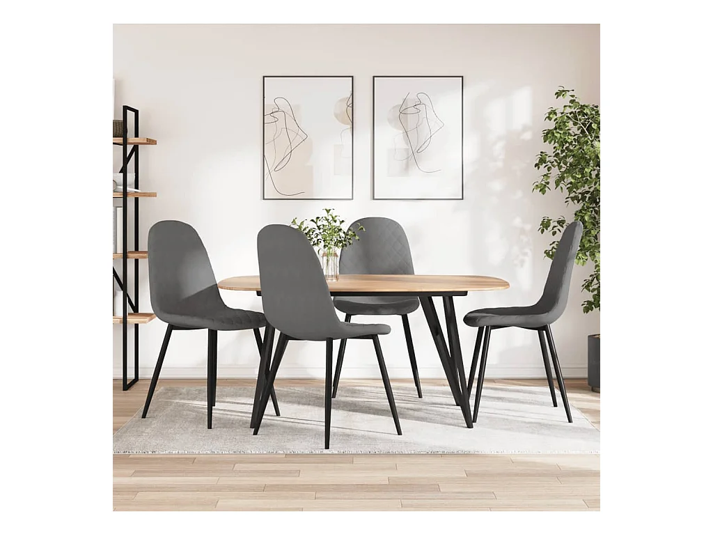 Set di 4 sedie da pranzo in velluto grigio scuro