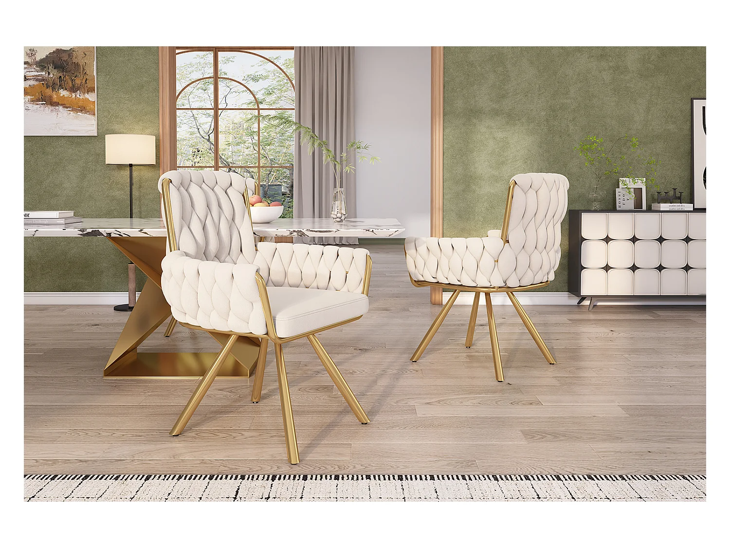 Chaise velours beige luxe con accoudoirs pieds métal doré réglables salon salle à manger lot de 4