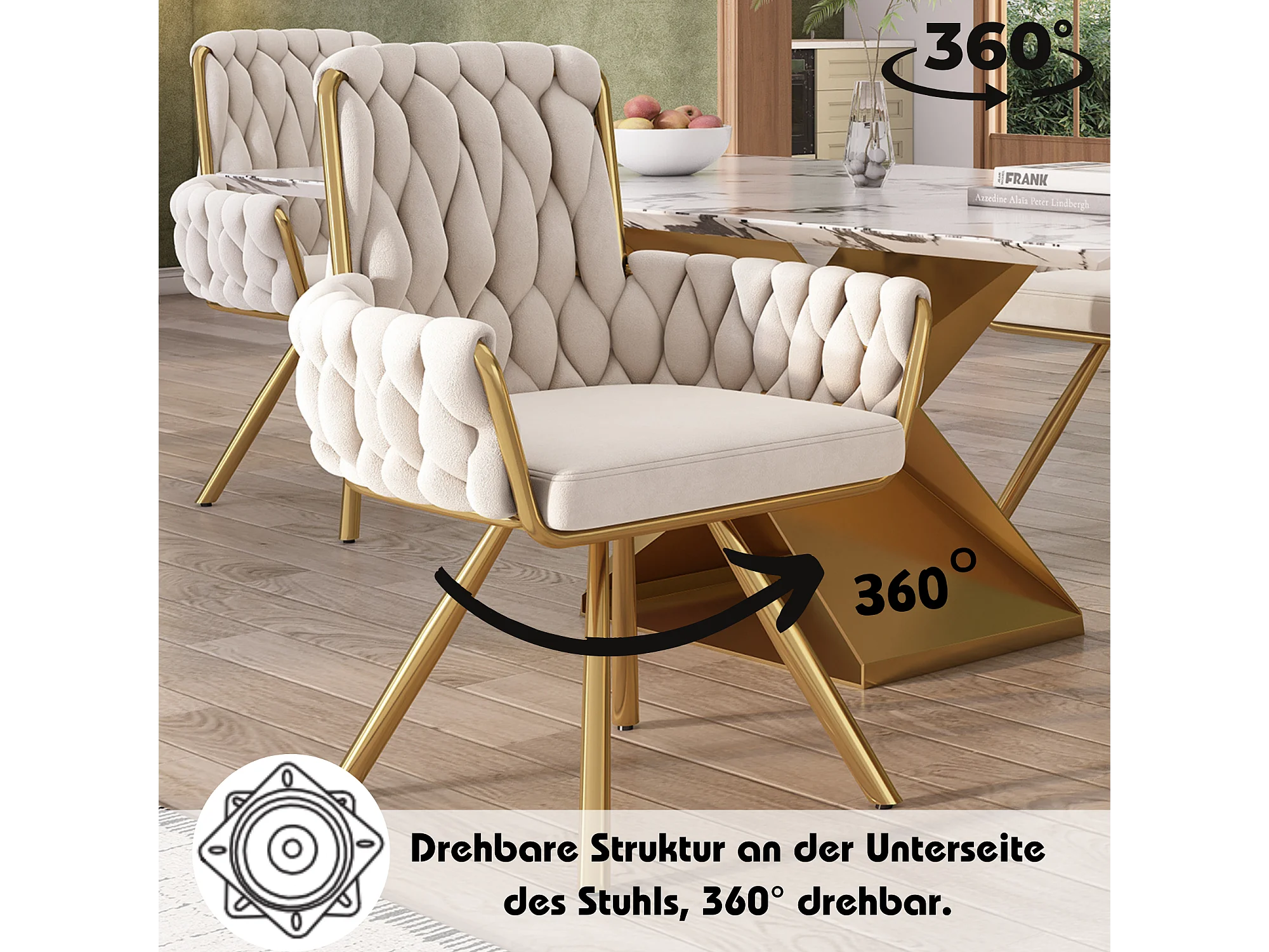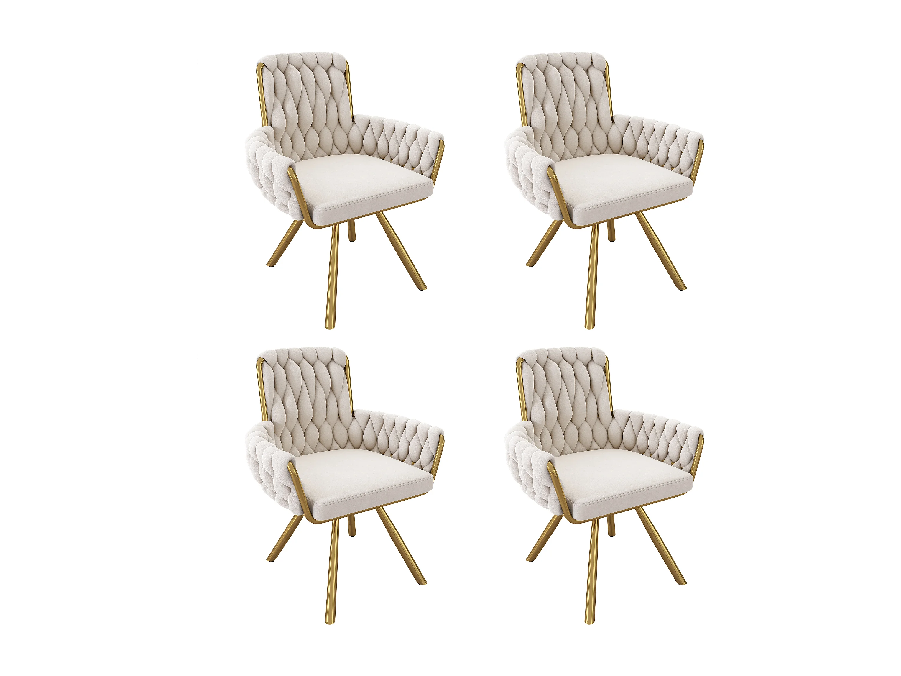 Set di 4 sedie da pranzo, motivo a rombi, poltrona girevole, gambe in metallo, beige (L64,77 x P63,5 x A50,8 cm)