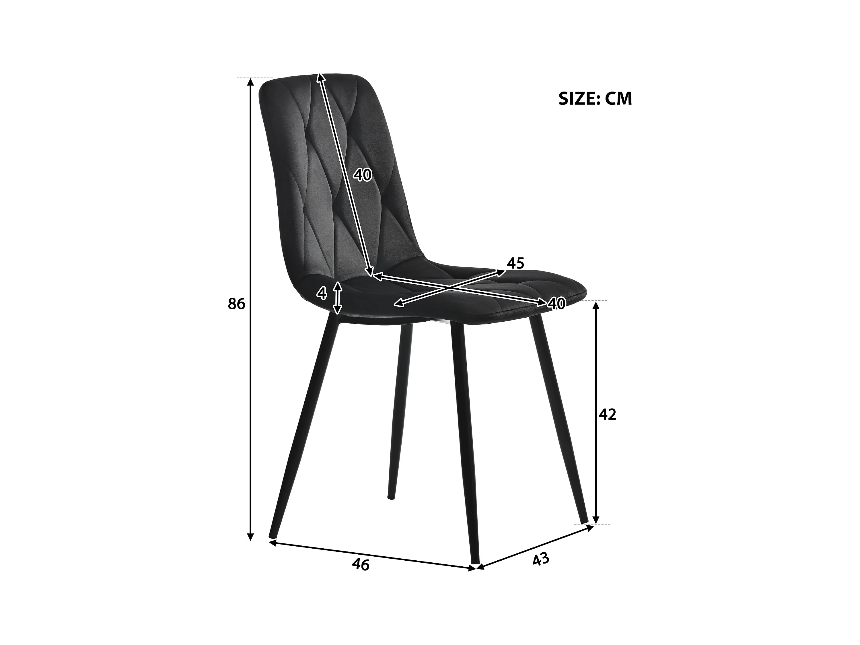 Set di 4 sedie da pranzo - sedia da pranzo in velluto nero - con gambe e schienale in metallo