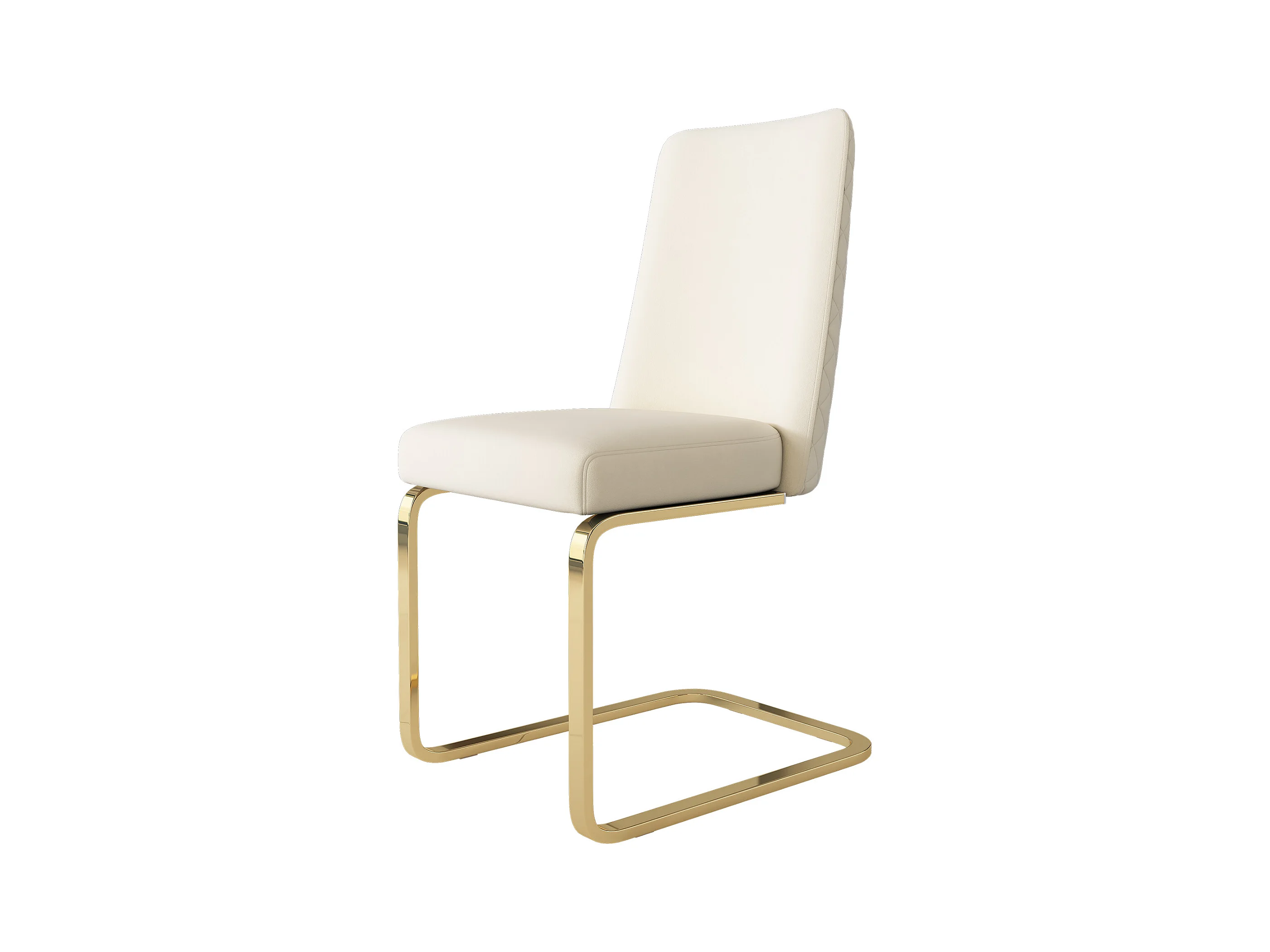 Set di 4 sedie da pranzo - velluto beige - con schienale imbottito e gambe in metallo dorato