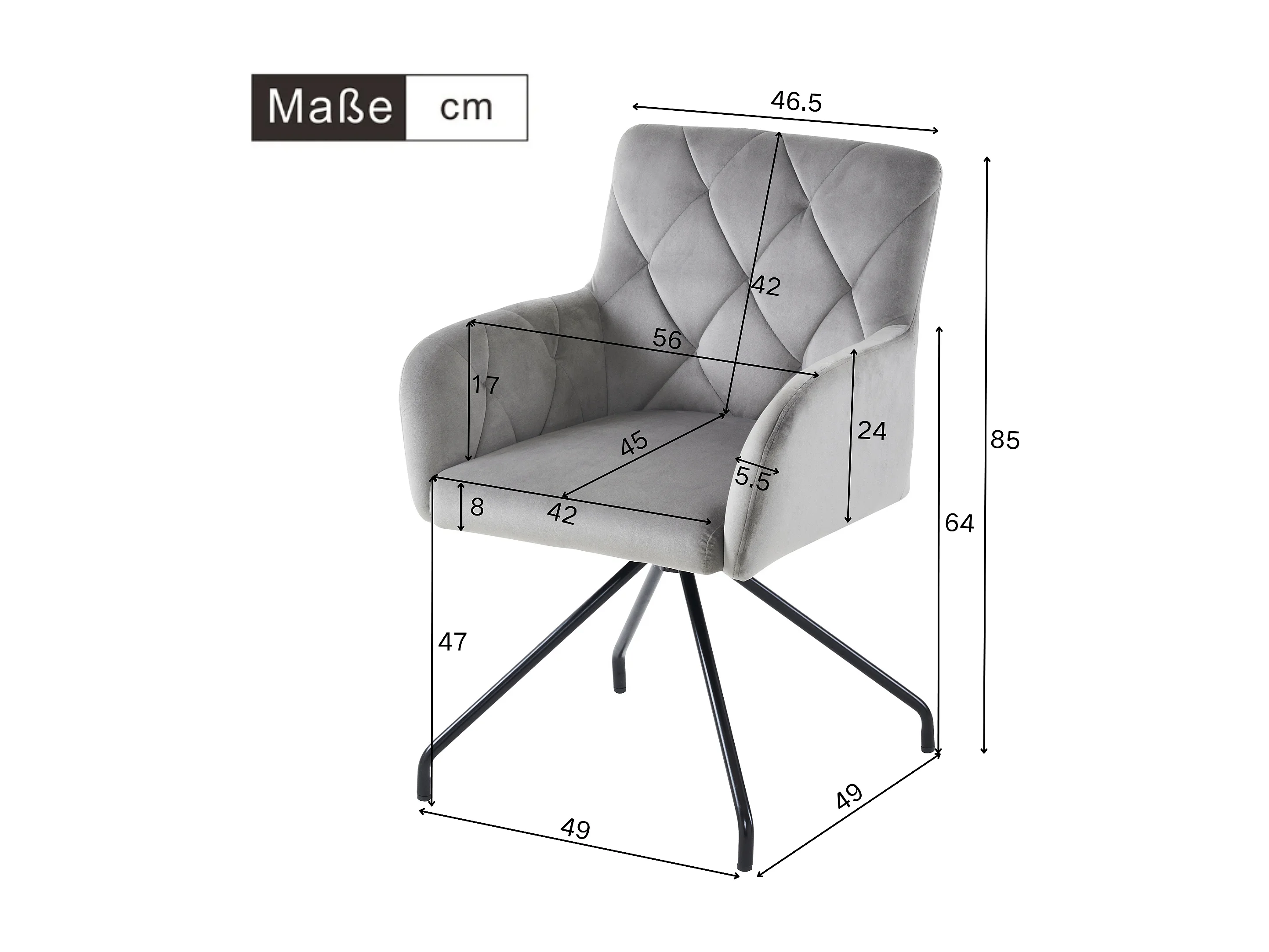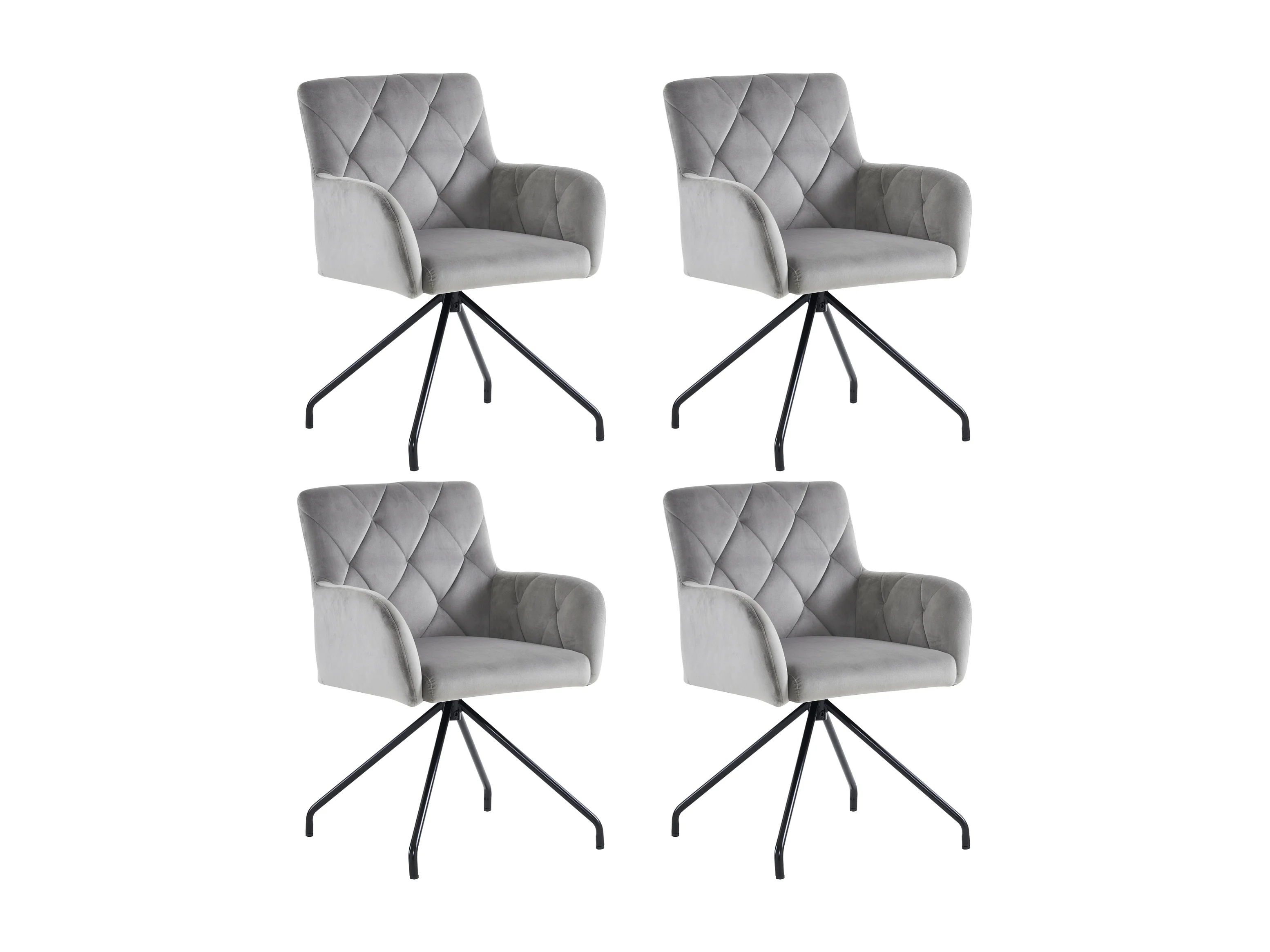 Set di 4 sedie da pranzo - Velluto grigio chiaro - schienale curvo e gambe in metallo - per soggiorno e camera da letto
