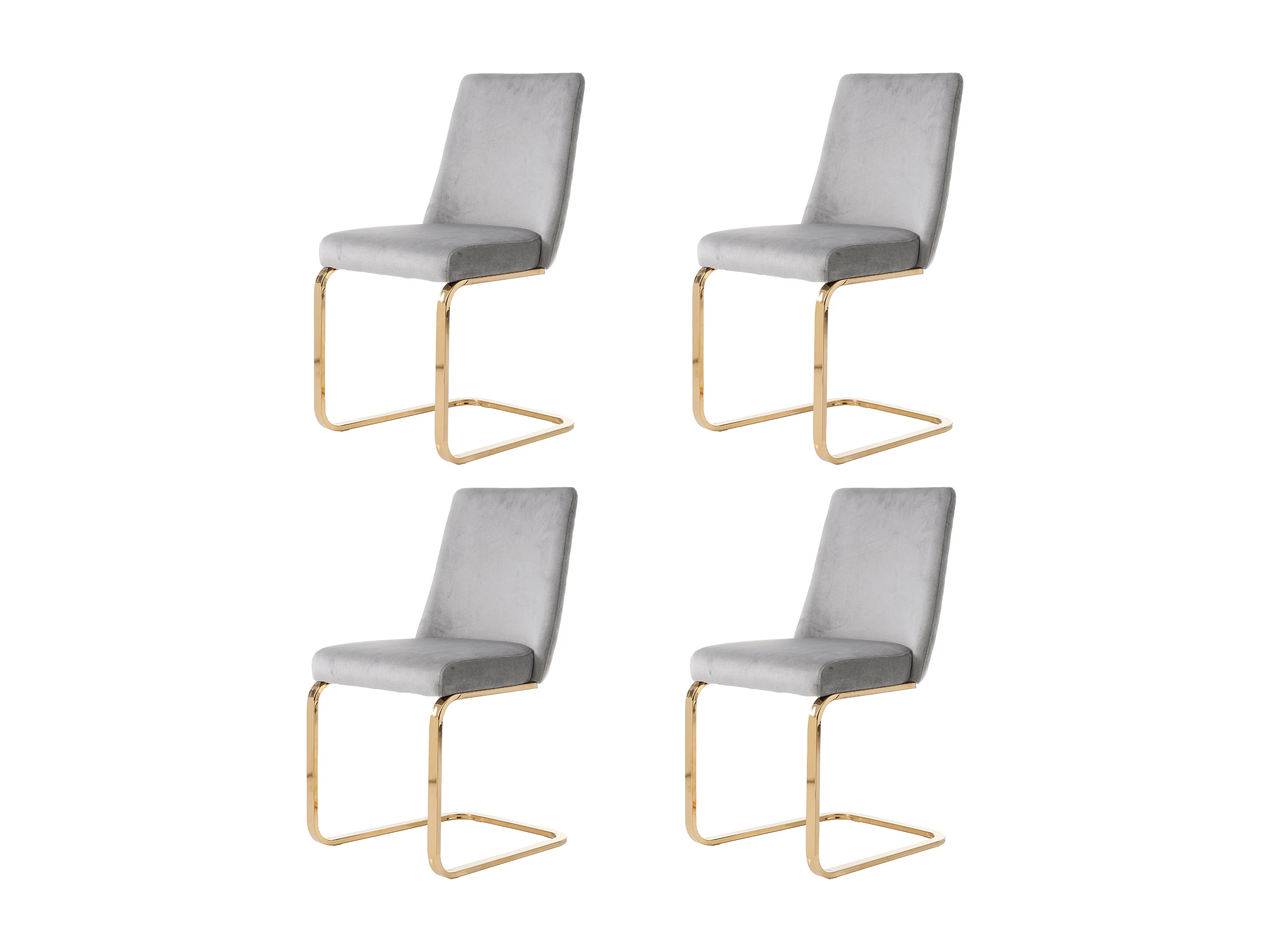 Set di 4 sedie da pranzo - velluto grigio - con schienale imbottito e gambe in metallo dorato