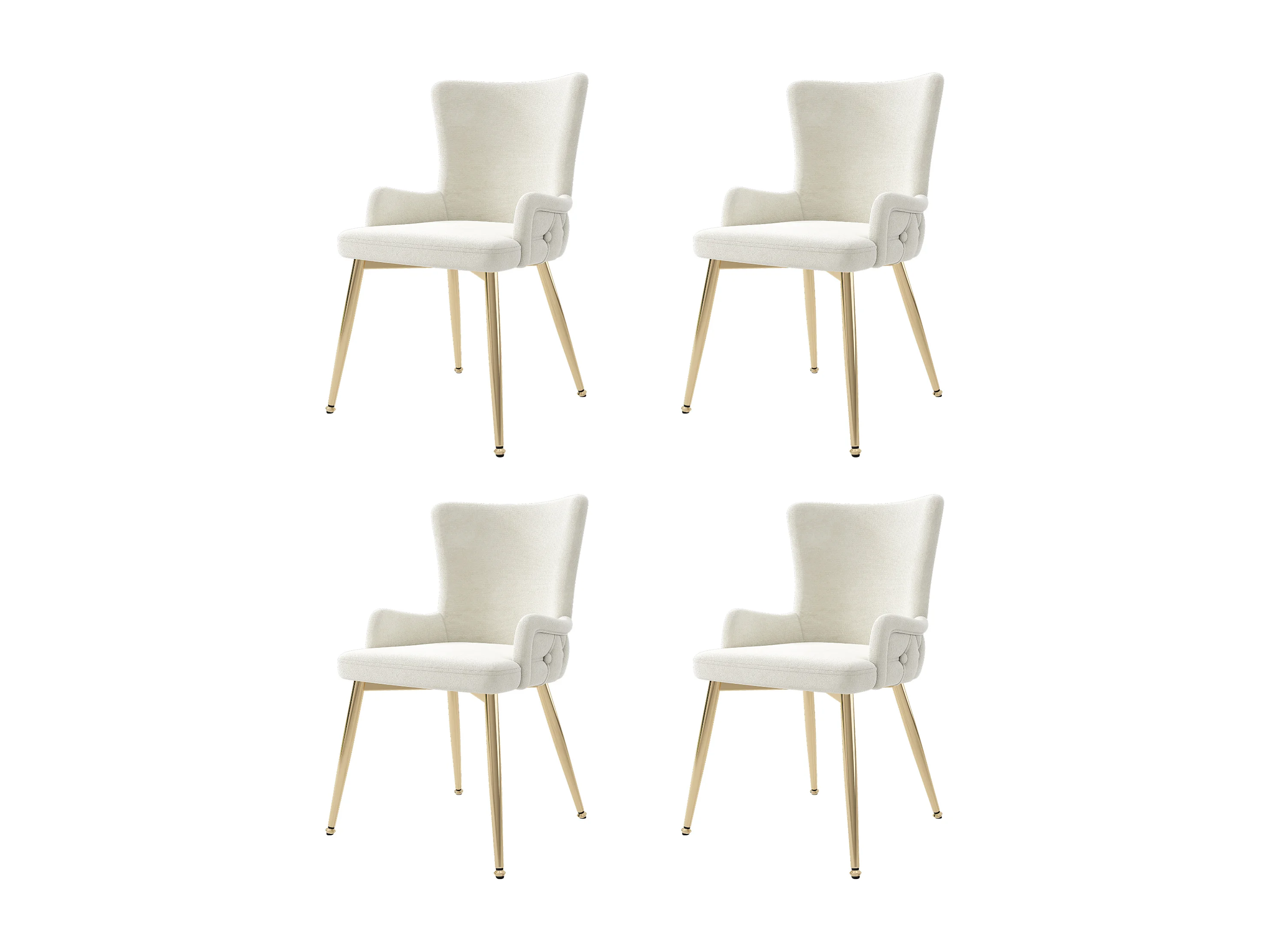 Set di 4 sedie di lusso in velluto - 62,23 x 58,42 x 55,88 cm - con quattro gambe in metallo dorato - beige
