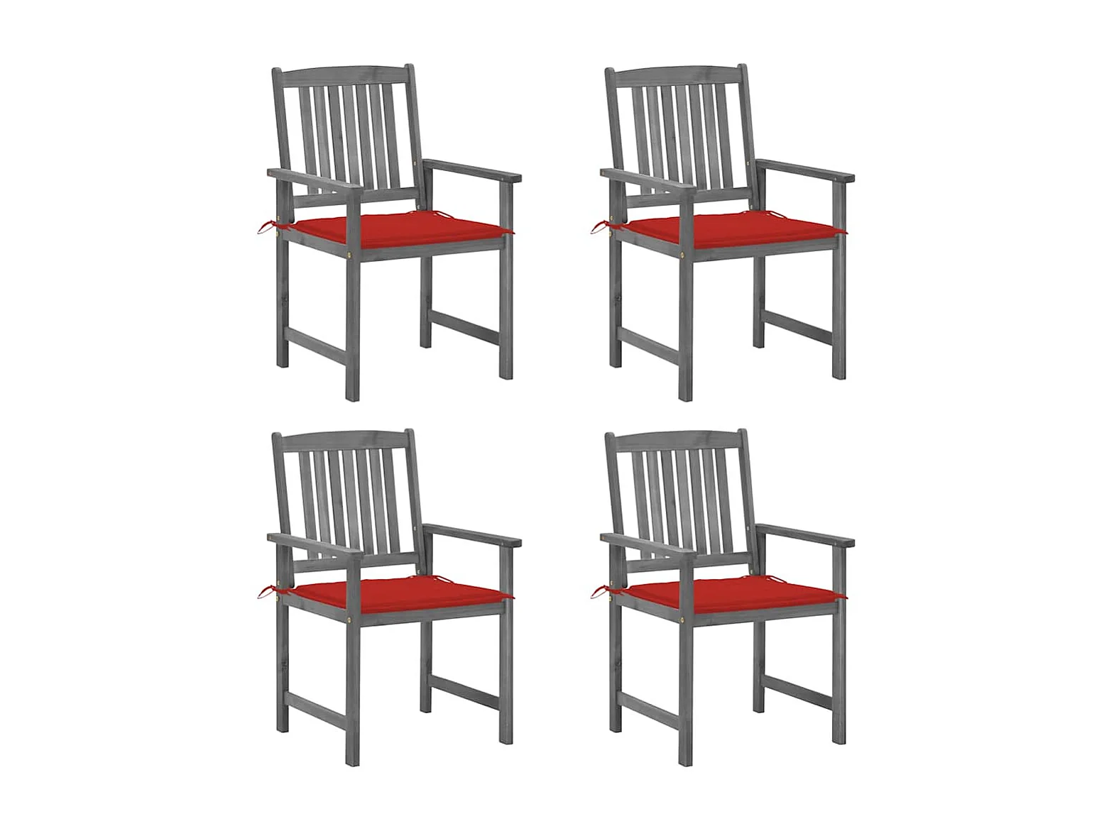 Set di 4 sedie e cuscini da giardino in legno massello di acacia grigio