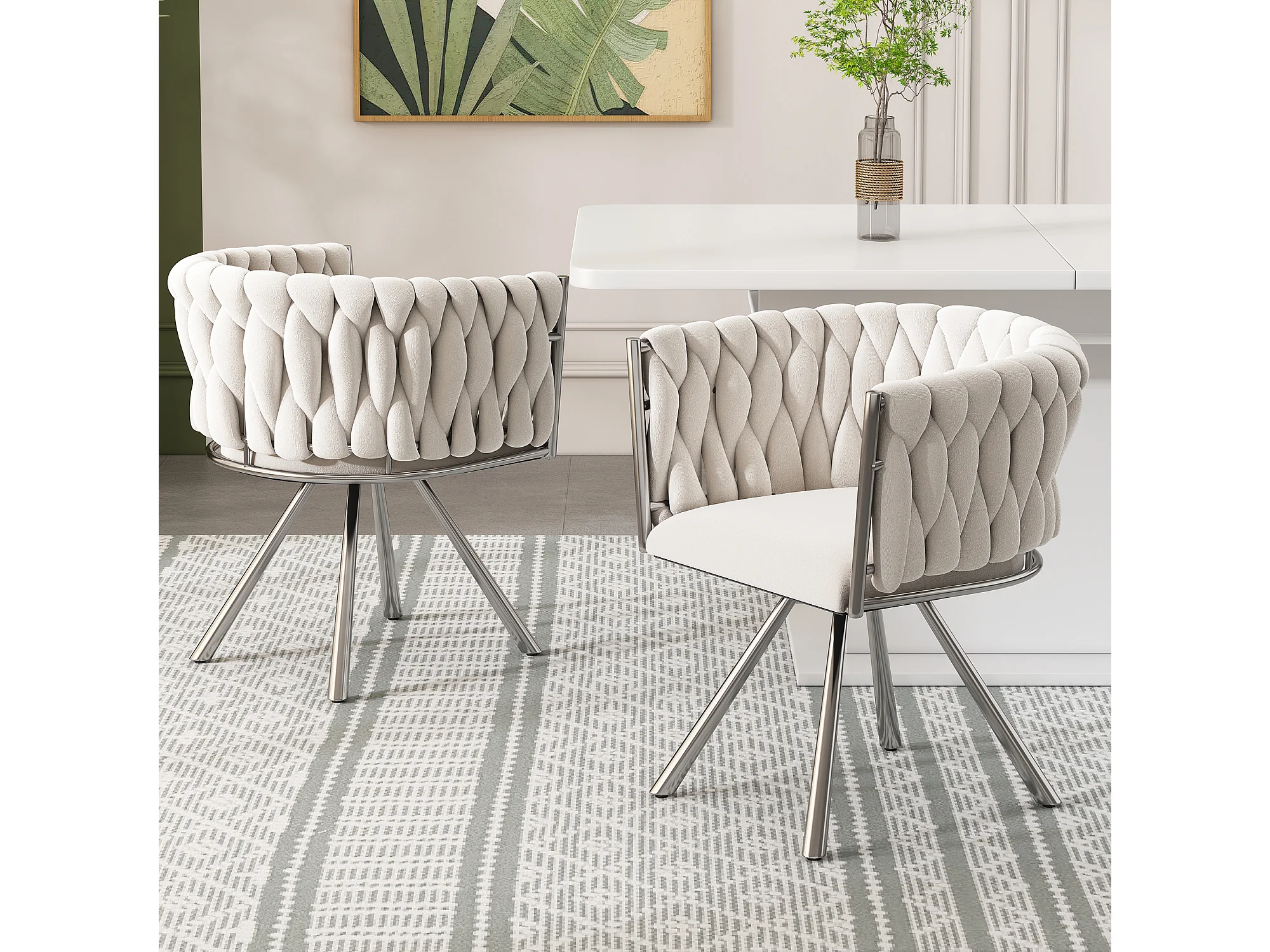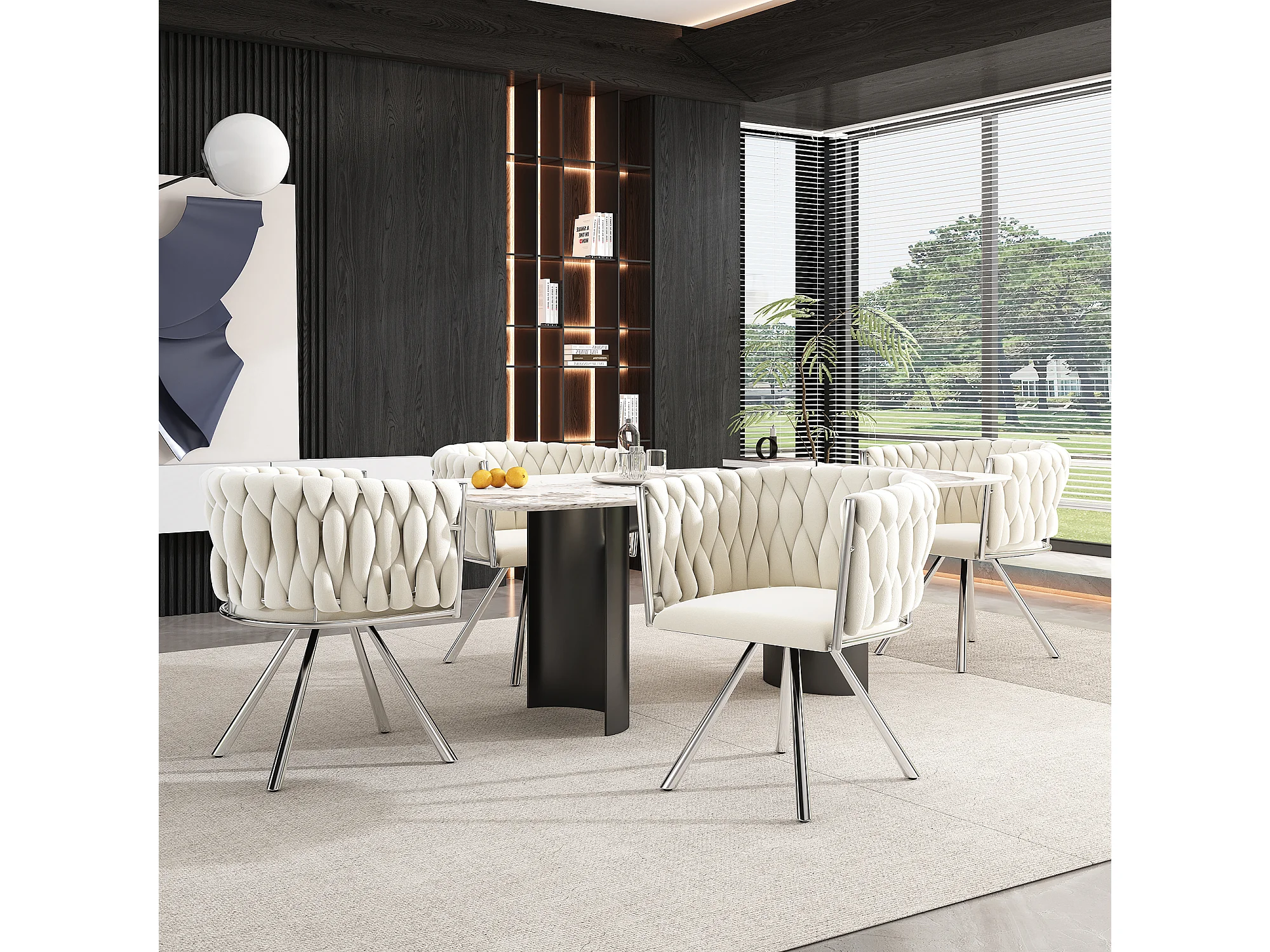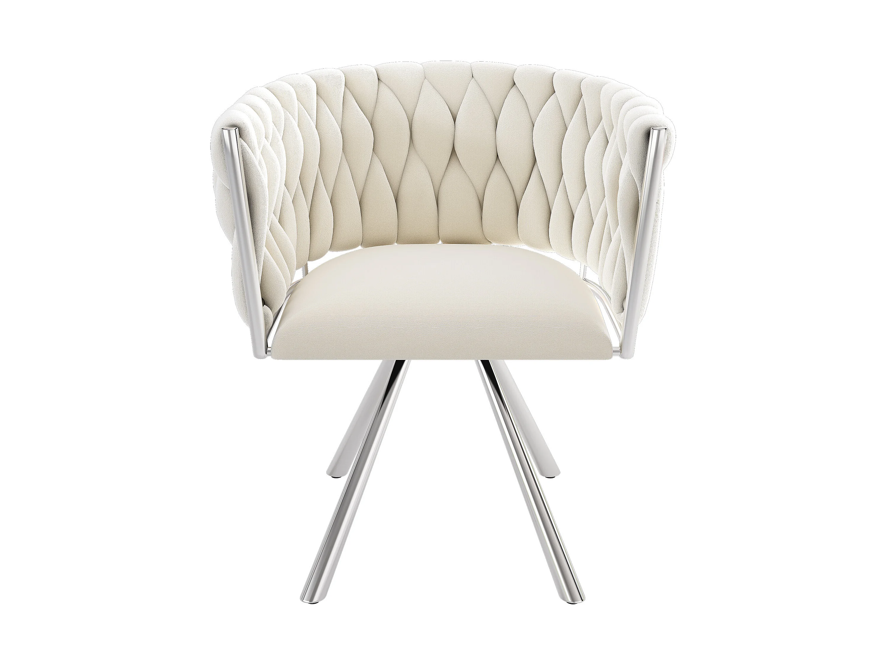 Set di 4 sedie girevoli con braccioli, gambe in metallo argentato - velluto beige