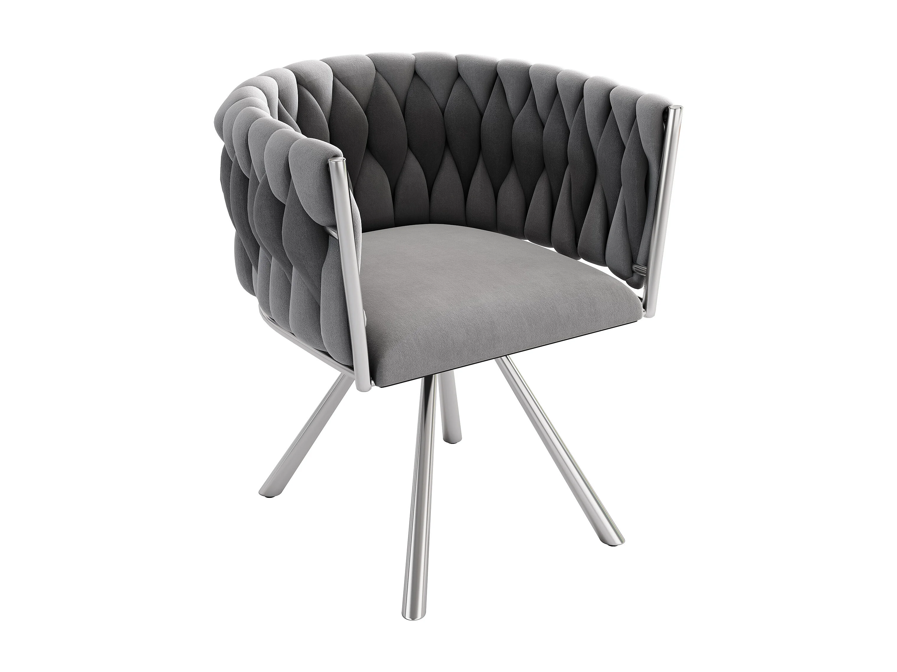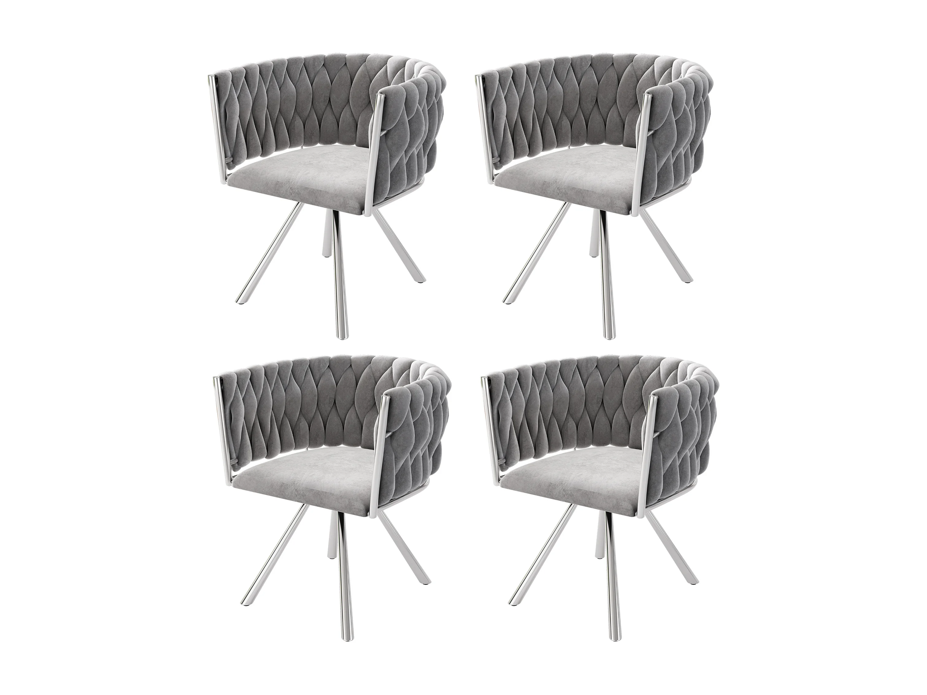 Set di 4 sedie girevoli con braccioli, gambe in metallo argentato - velluto grigio