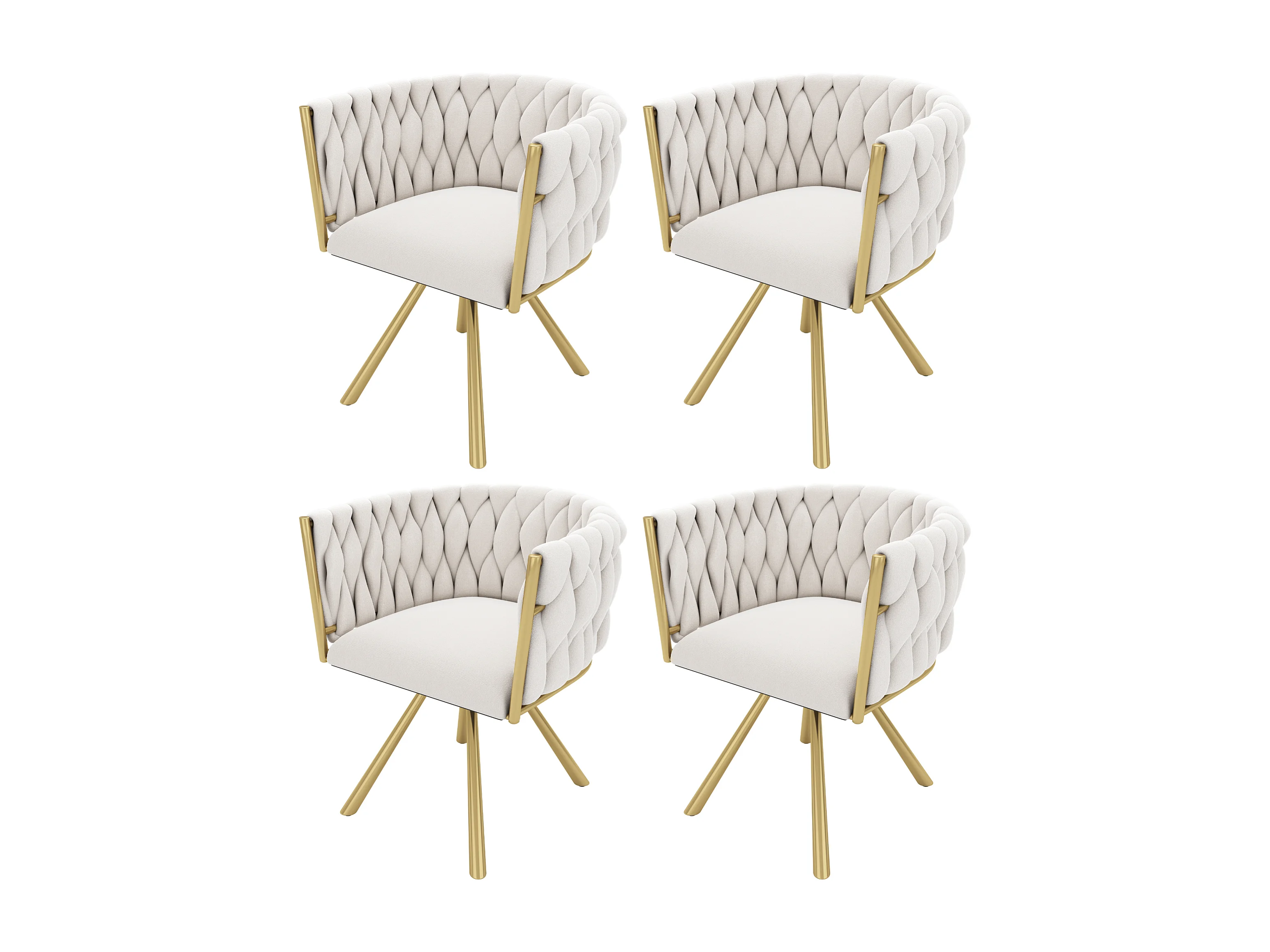 Set di 4 sedie girevoli, gambe in metallo dorato - Tessuto in velluto beige
