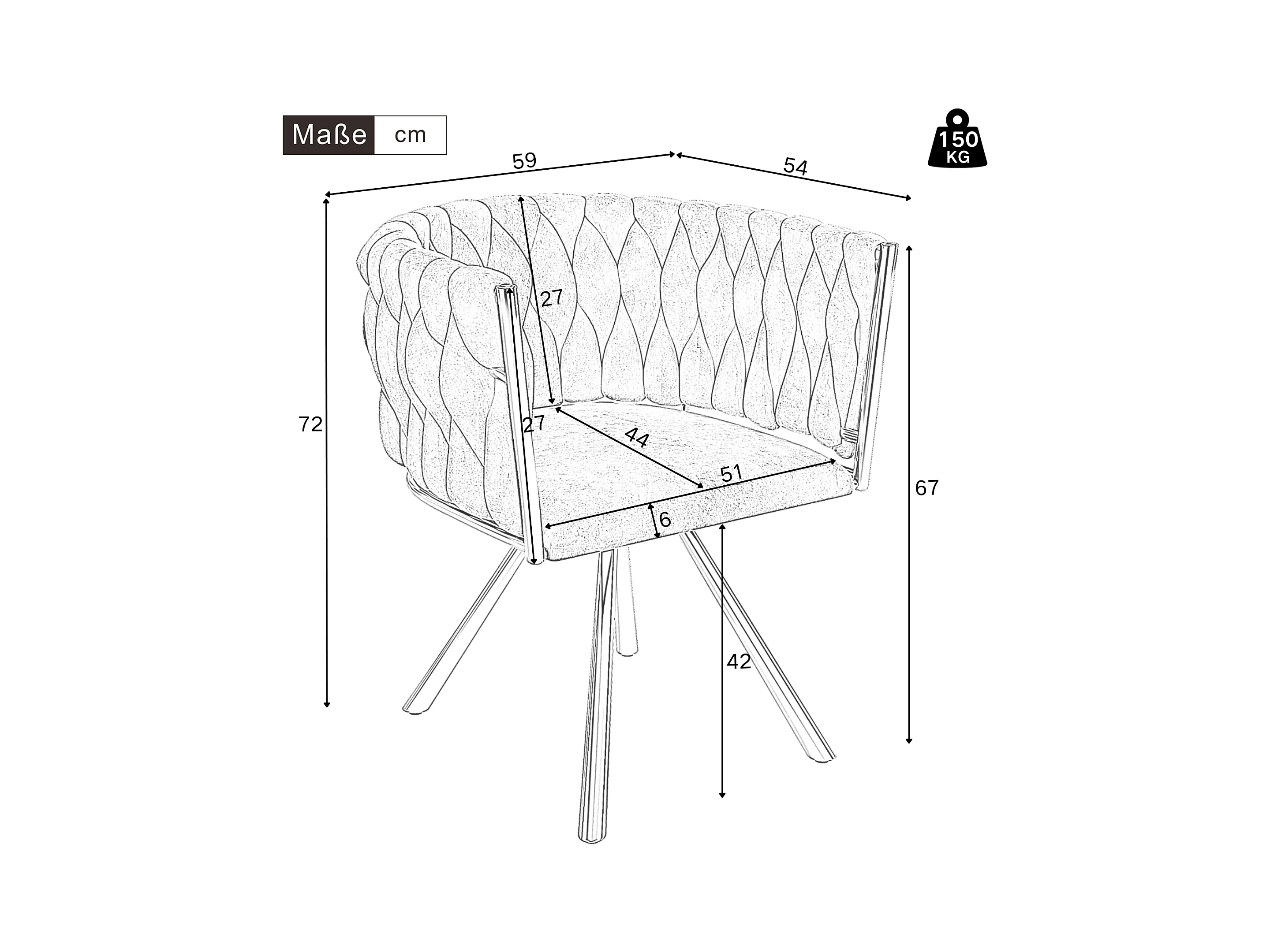 Set di 4 sedie girevoli in velluto - 72 x 44 x 59 cm - Soggiorno e camera da letto - Quattro gambe in metallo argentato - Beige