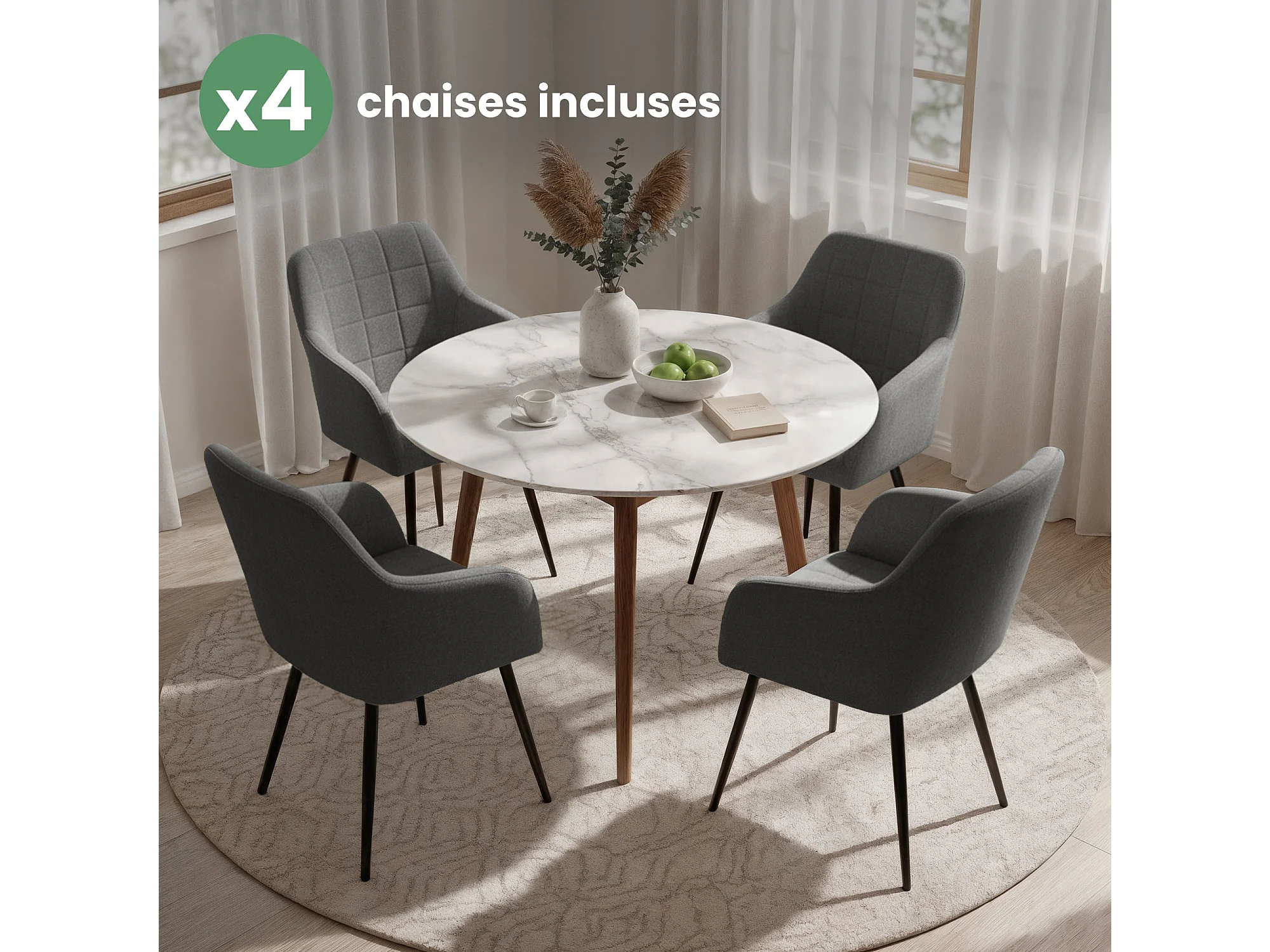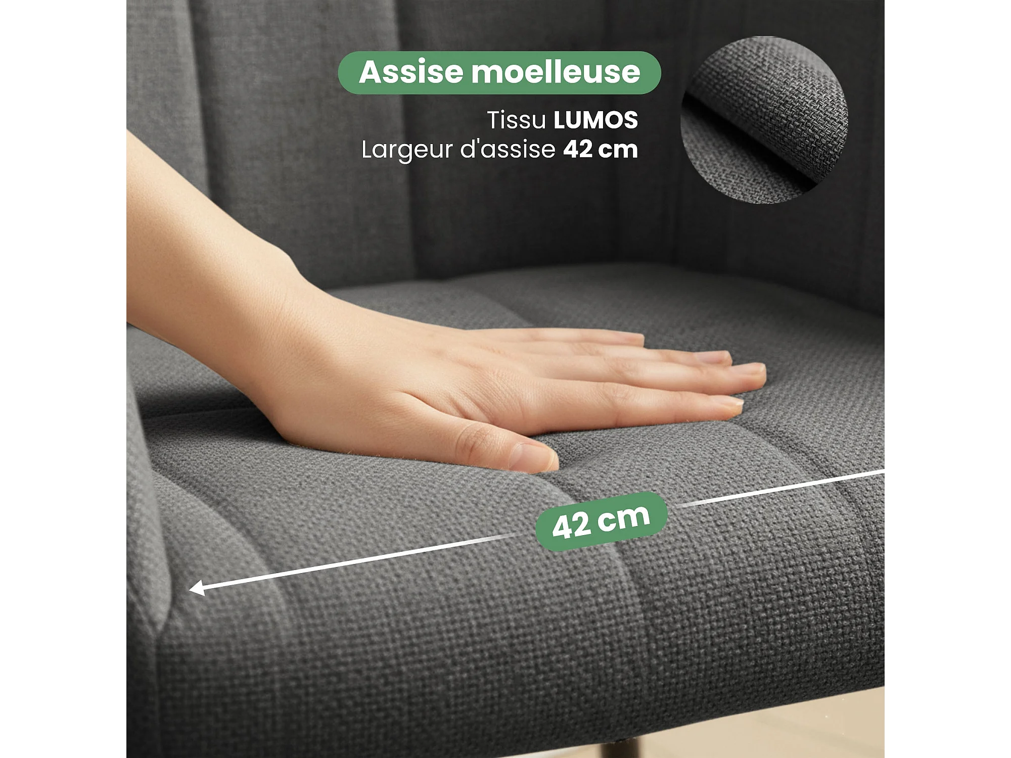 Set di 4 Sedie imbottite con cuciture quadrate LUXANO Grafite gambe nere tessuto Lumos