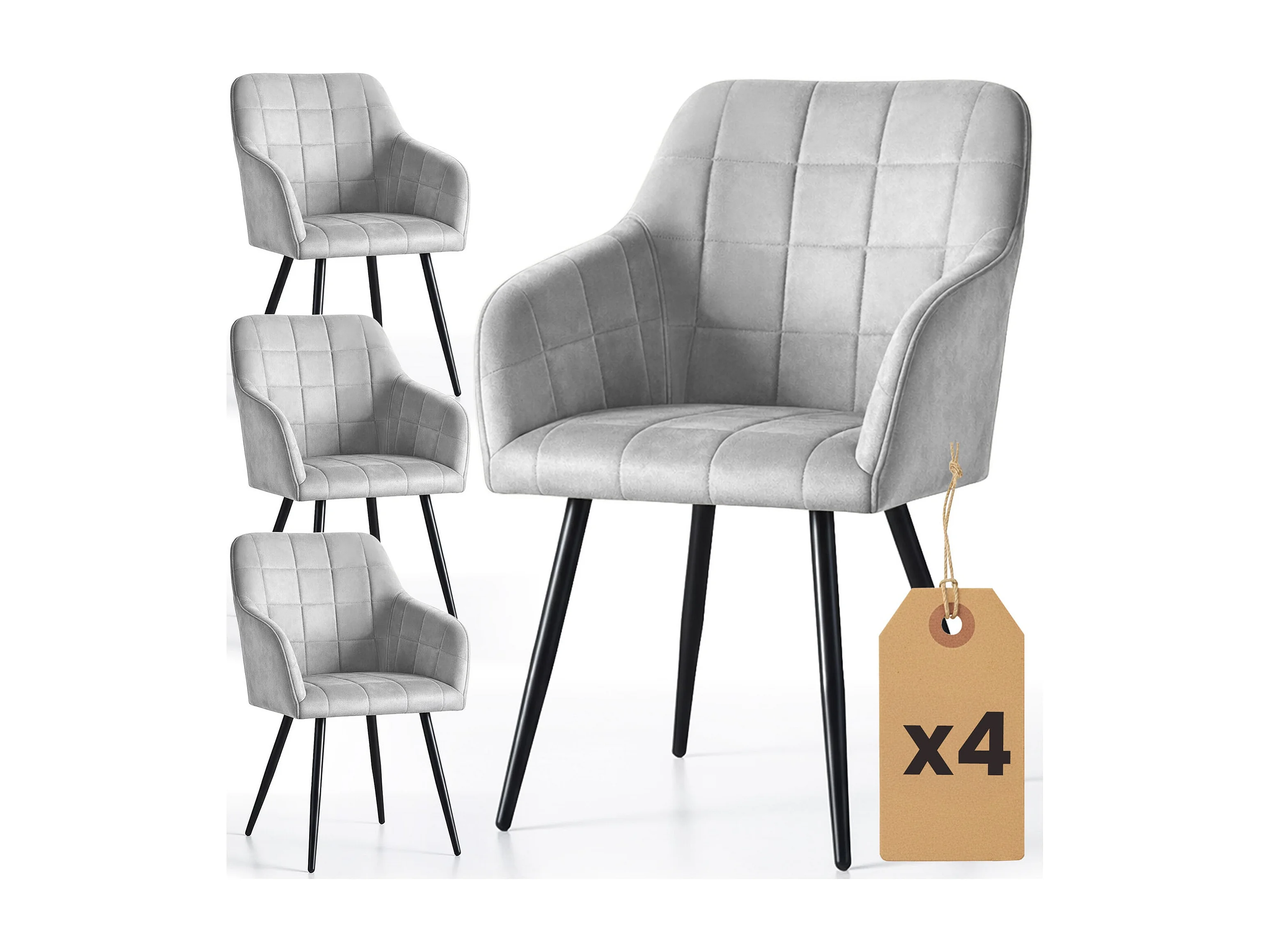 Set di 4 Sedie imbottite con cuciture quadrate LUXANO Grigio gambe nere