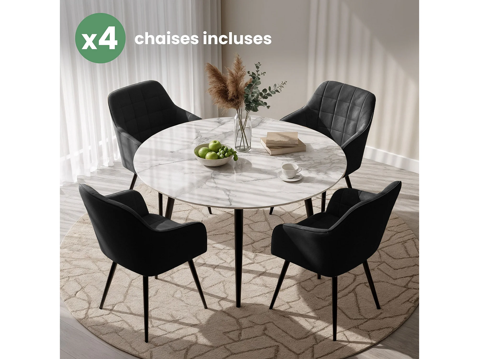 Set di 4 Sedie imbottite con cuciture quadrate LUXANO Nero gambe nere