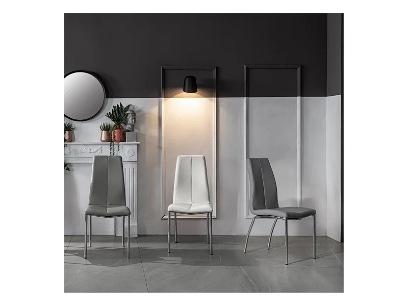Set di 4 sedie con base a slitta - Base in metallo cromato Supporta fino a 120 kg Imbottitura morbida con rivestimento in similpelle - Bianco