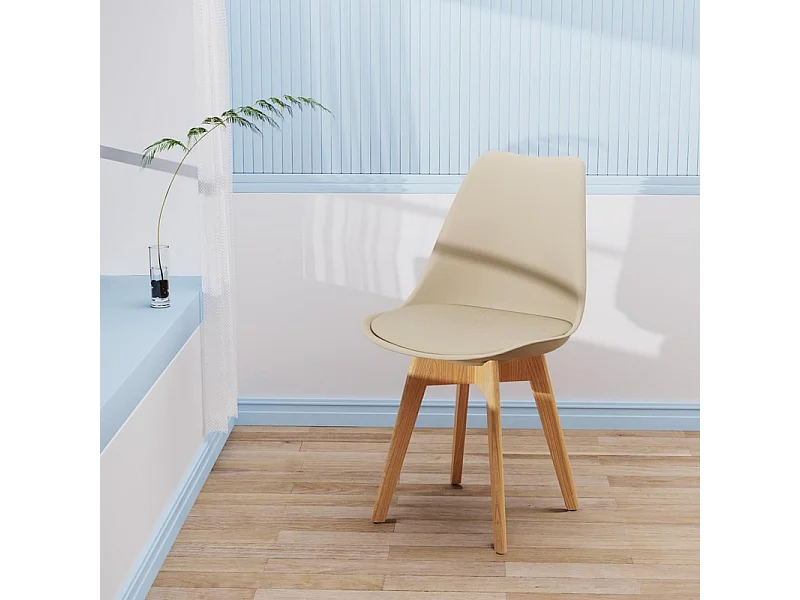Set di 2 sedie imbottite in similpelle tortora "Stilezze" poltrone con gambe in legno cm 52x48,5 82h