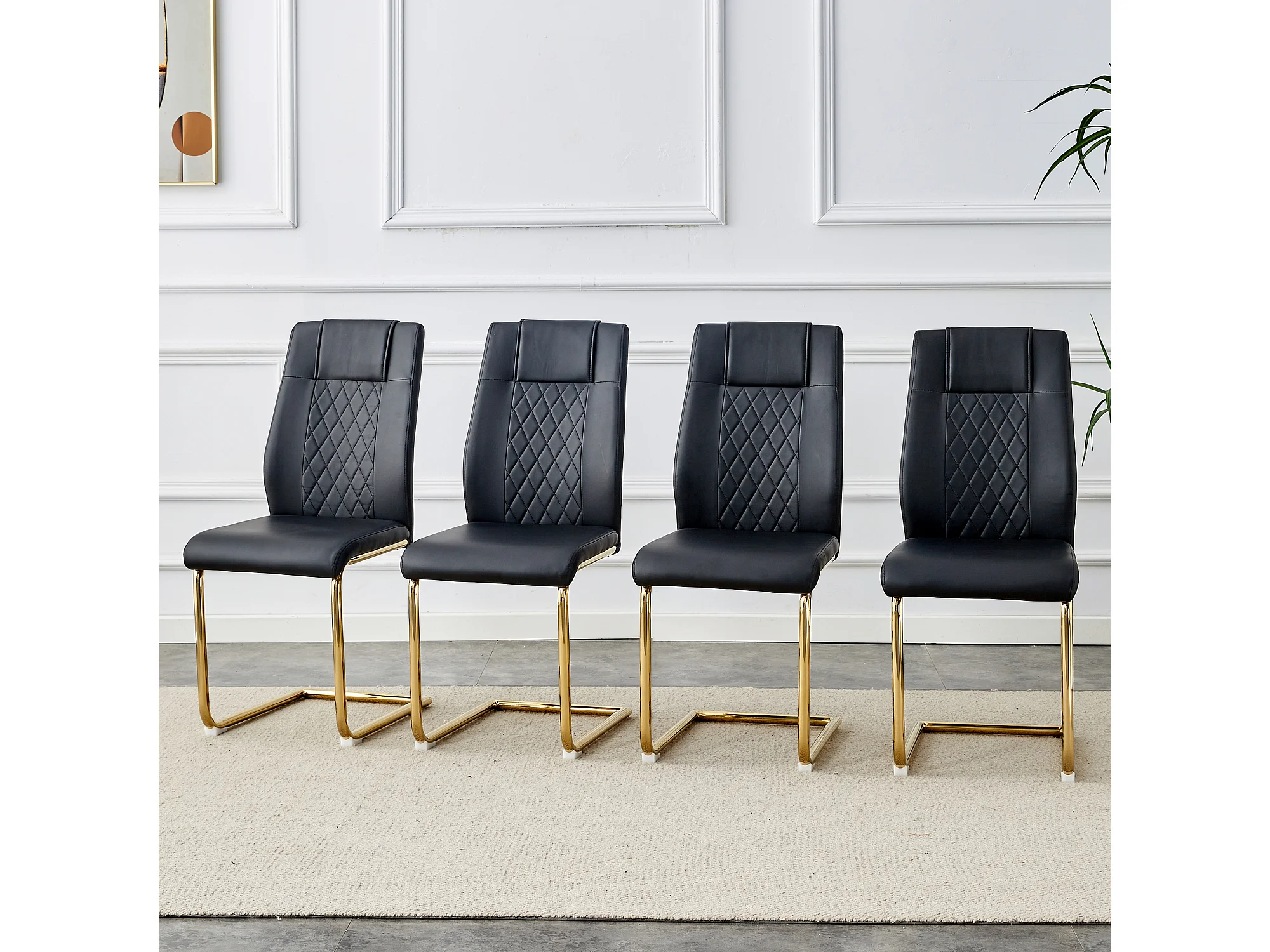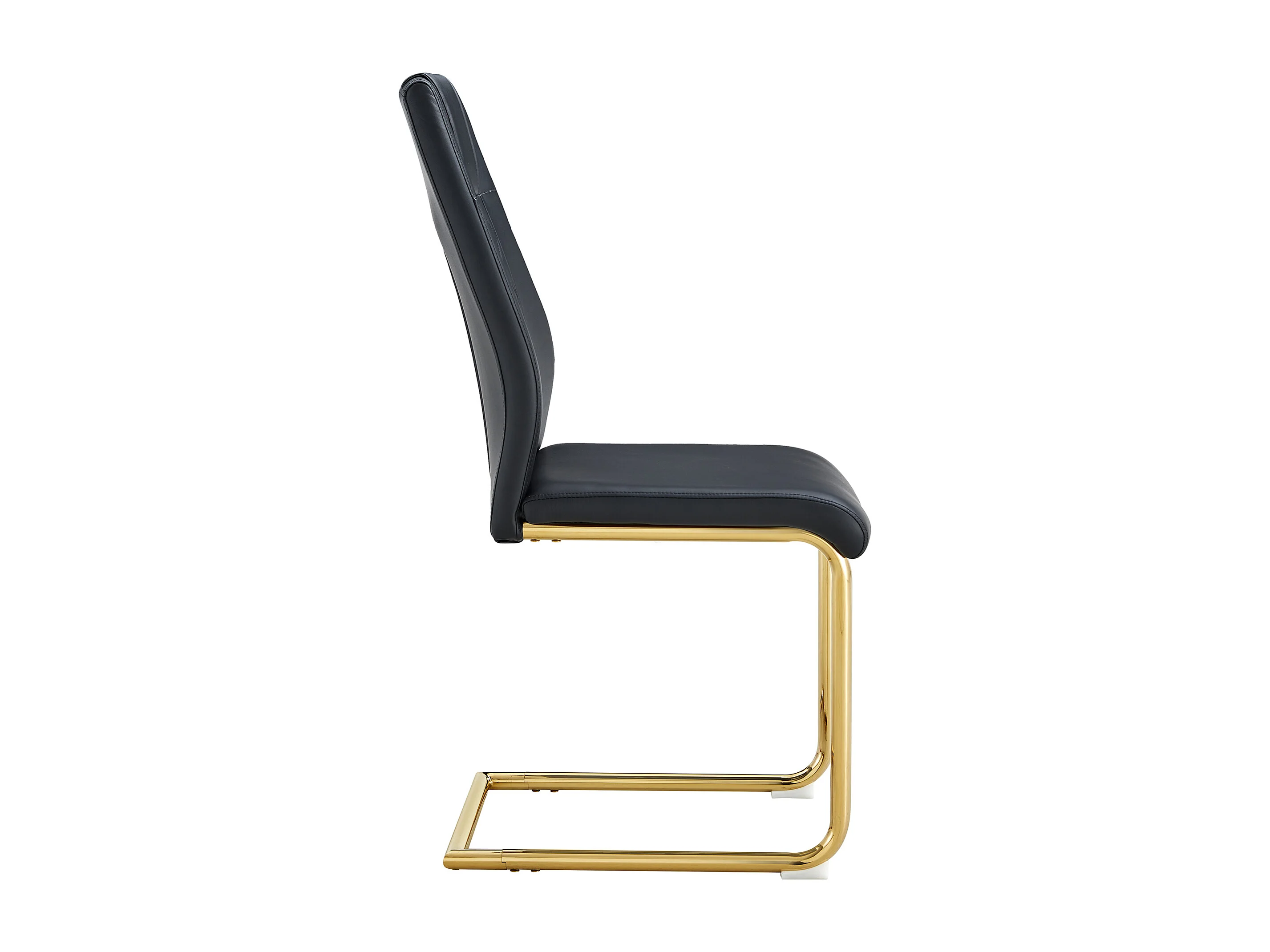 Set di 4 sedie in similpelle nera - Gambe in metallo dorato antiscivolo