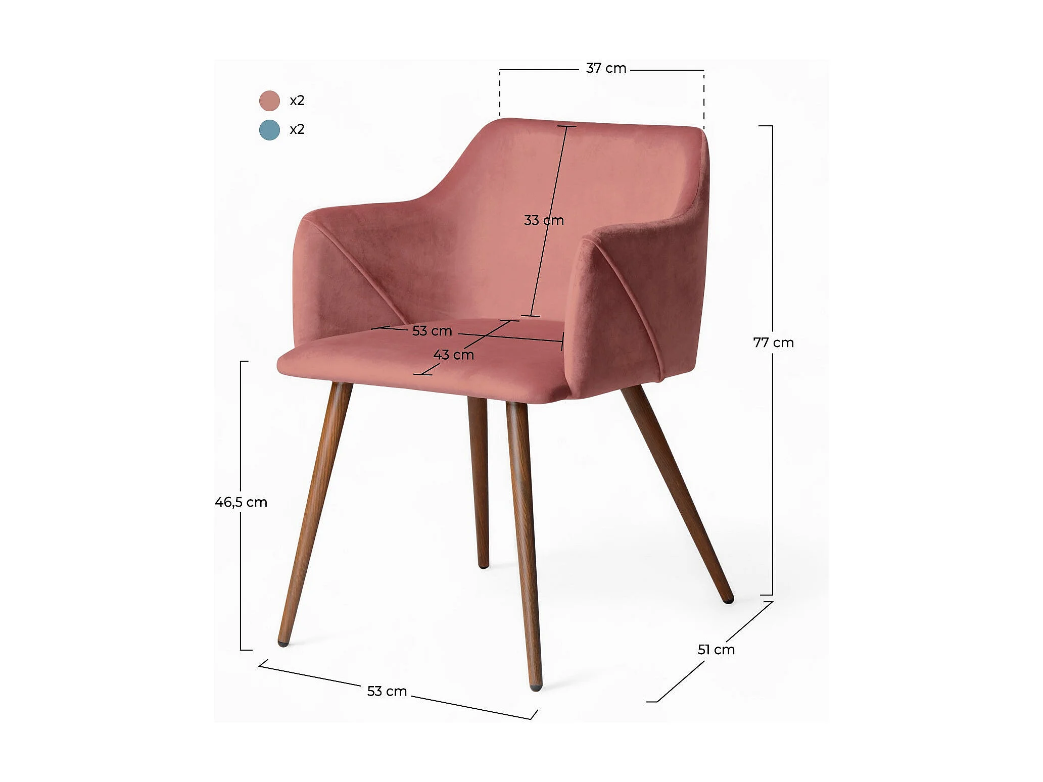 Set di 4 sedie in velluto blu e rosa - Daisy